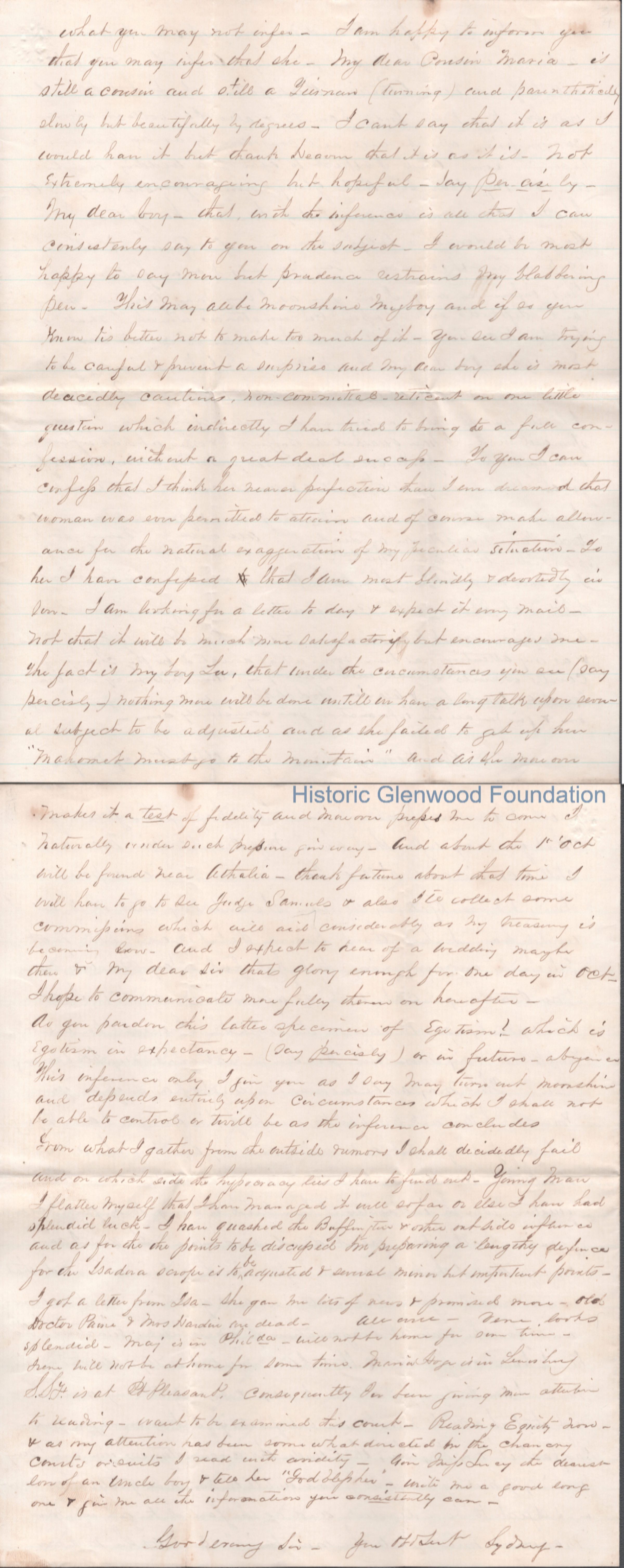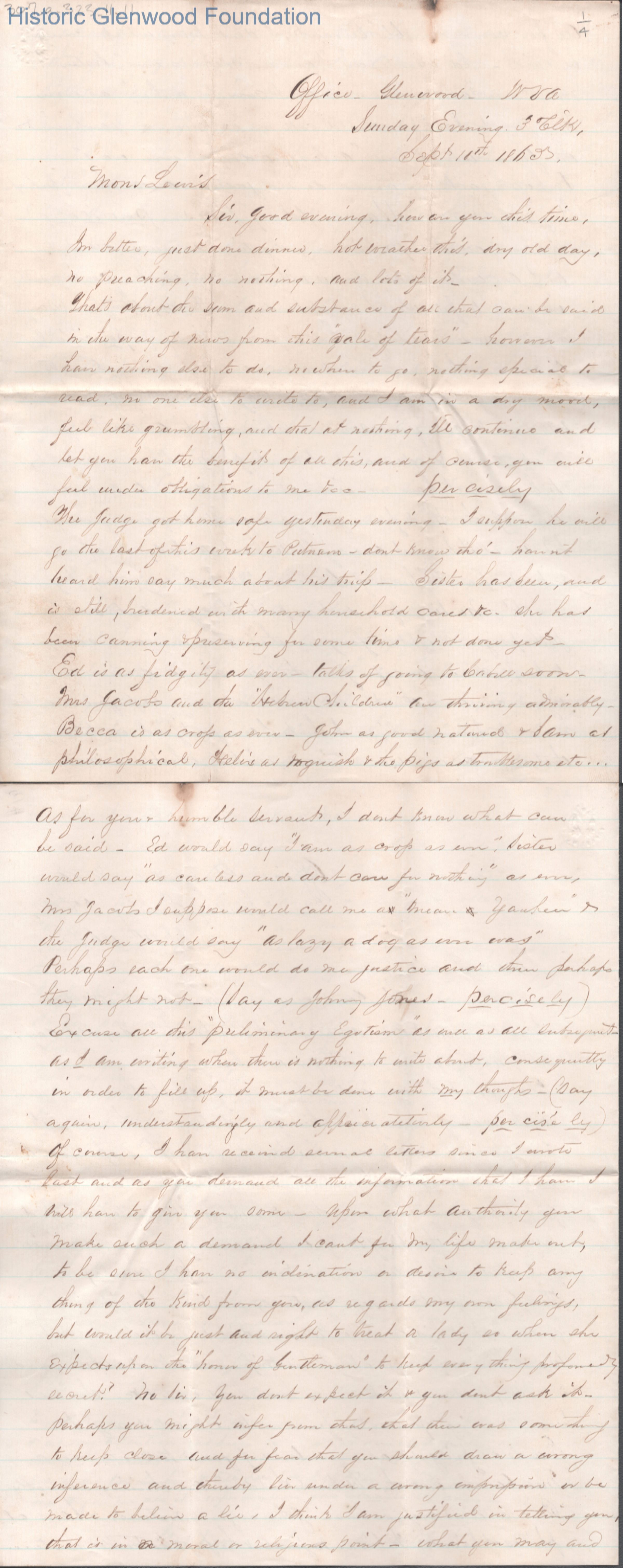 Four-page letter to Lewis Summers from his uncle William S. Laidley, Sep 10, 1865.