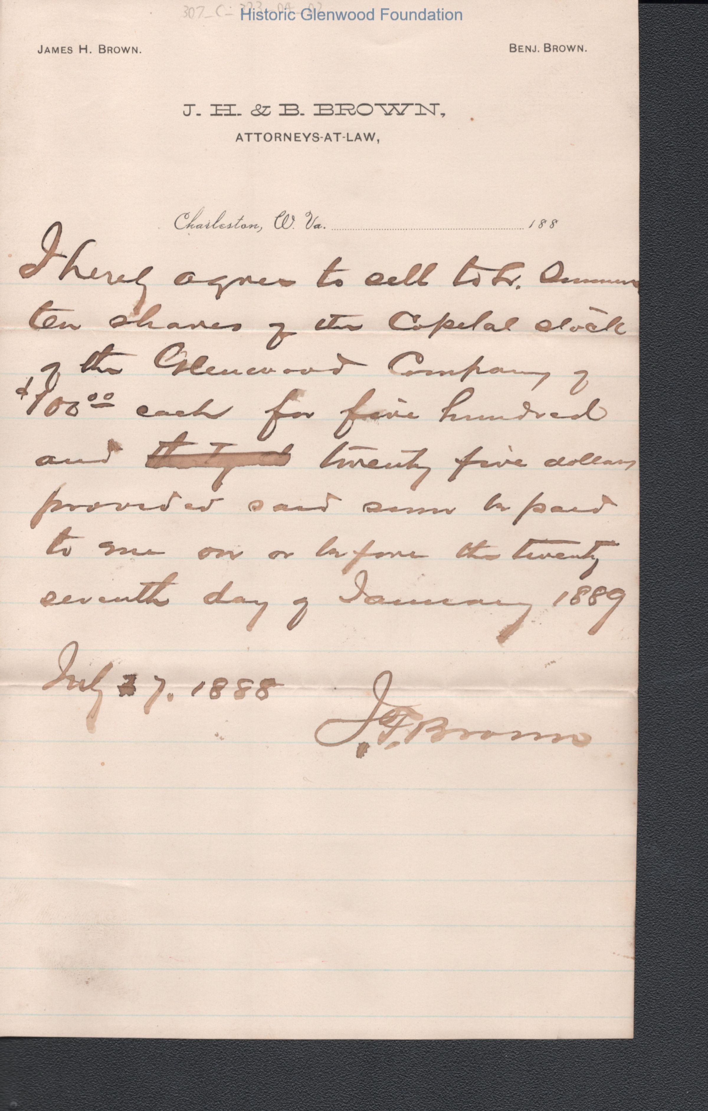 Lewis Summers, purchase of Glenwood Company Stock, July 7, 1888