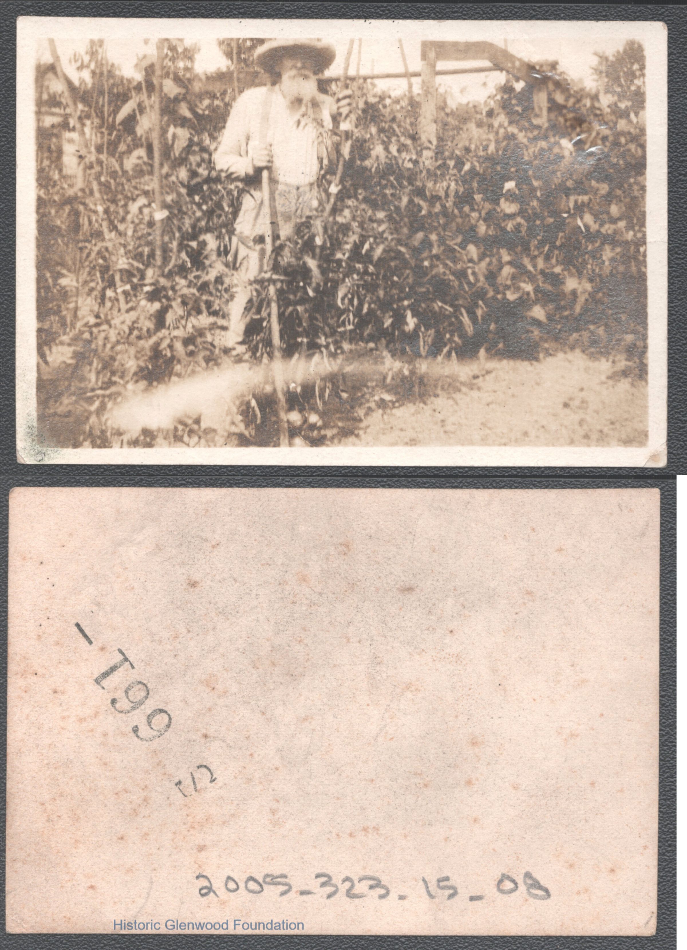 Candid image of Lewis Summers in garden tomato patch at Glenwood, no date.
