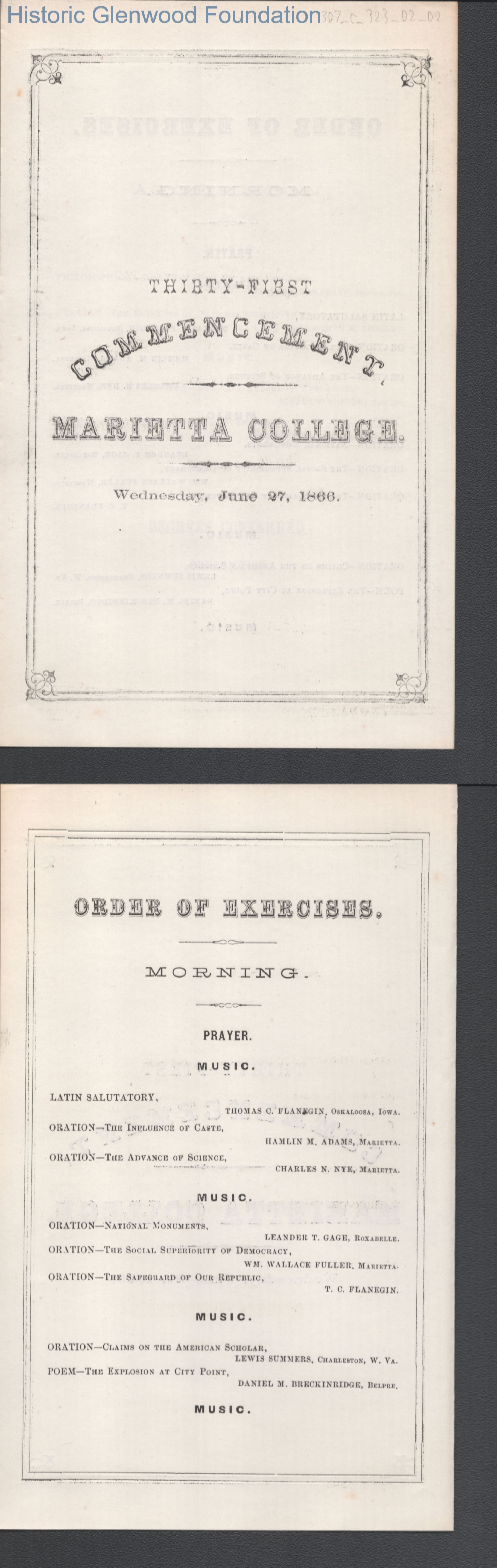 Lewis Summers, Marietta College Thirty-First Commencement, 1866