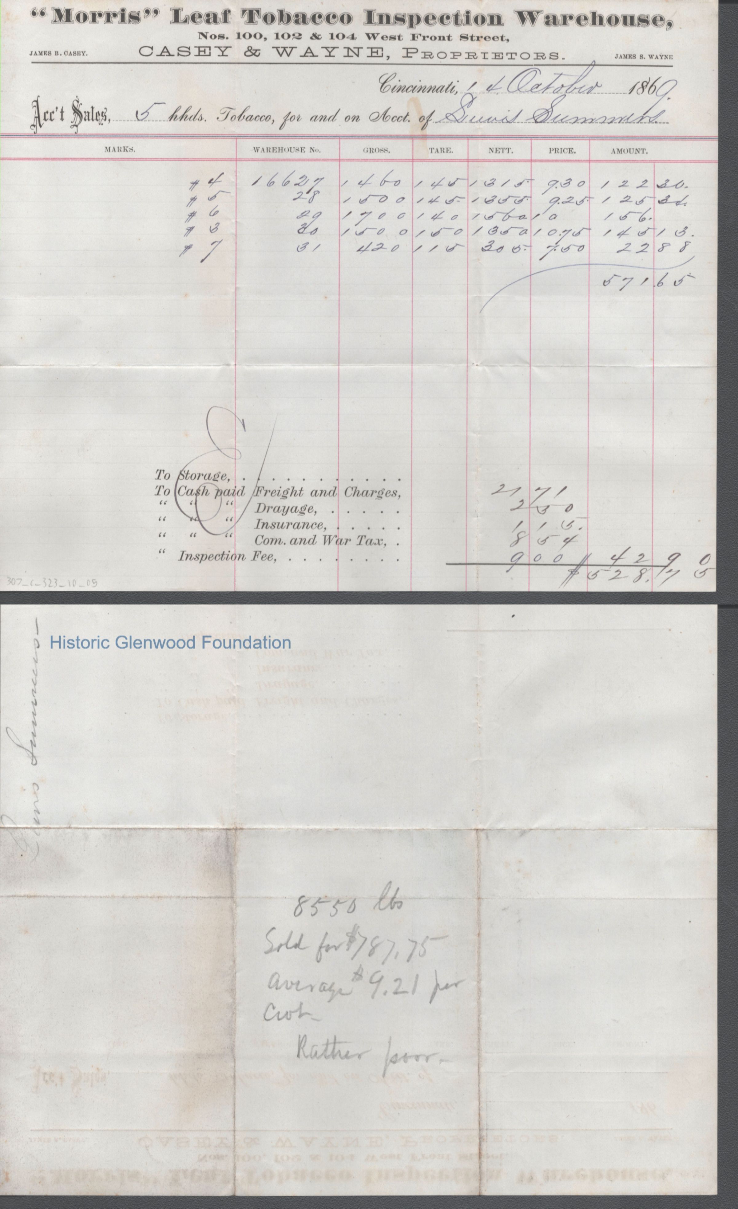 Lewis Summers, Morris Tobacco Warehouse Fees