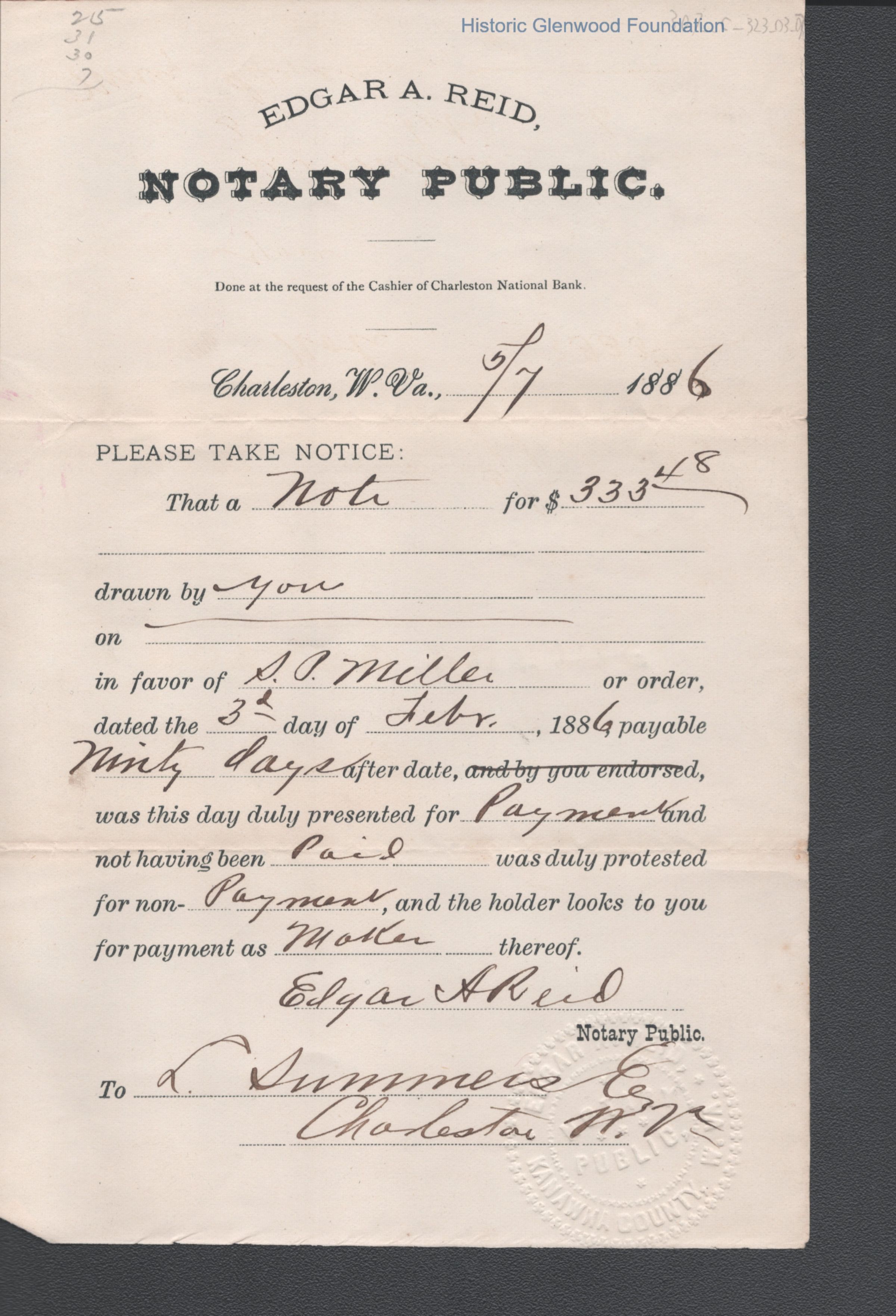 Lewis Summers, Notary Public bank note
