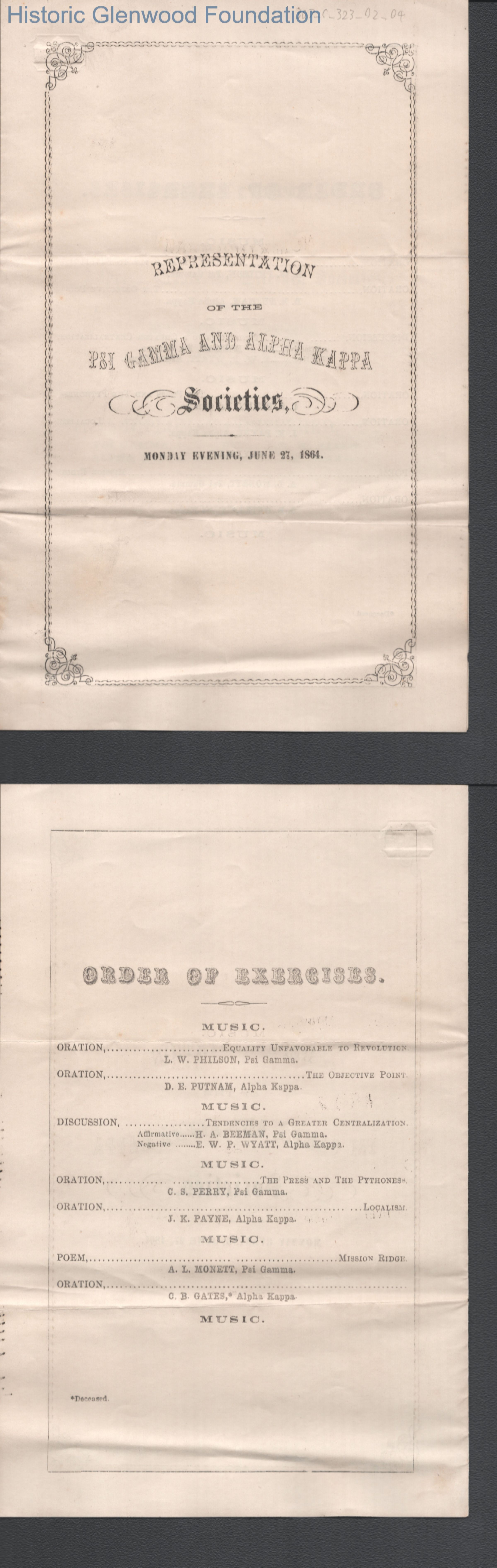 Lewis Summers, Representation of the Gamma and Alpha Kappa Societies 1864