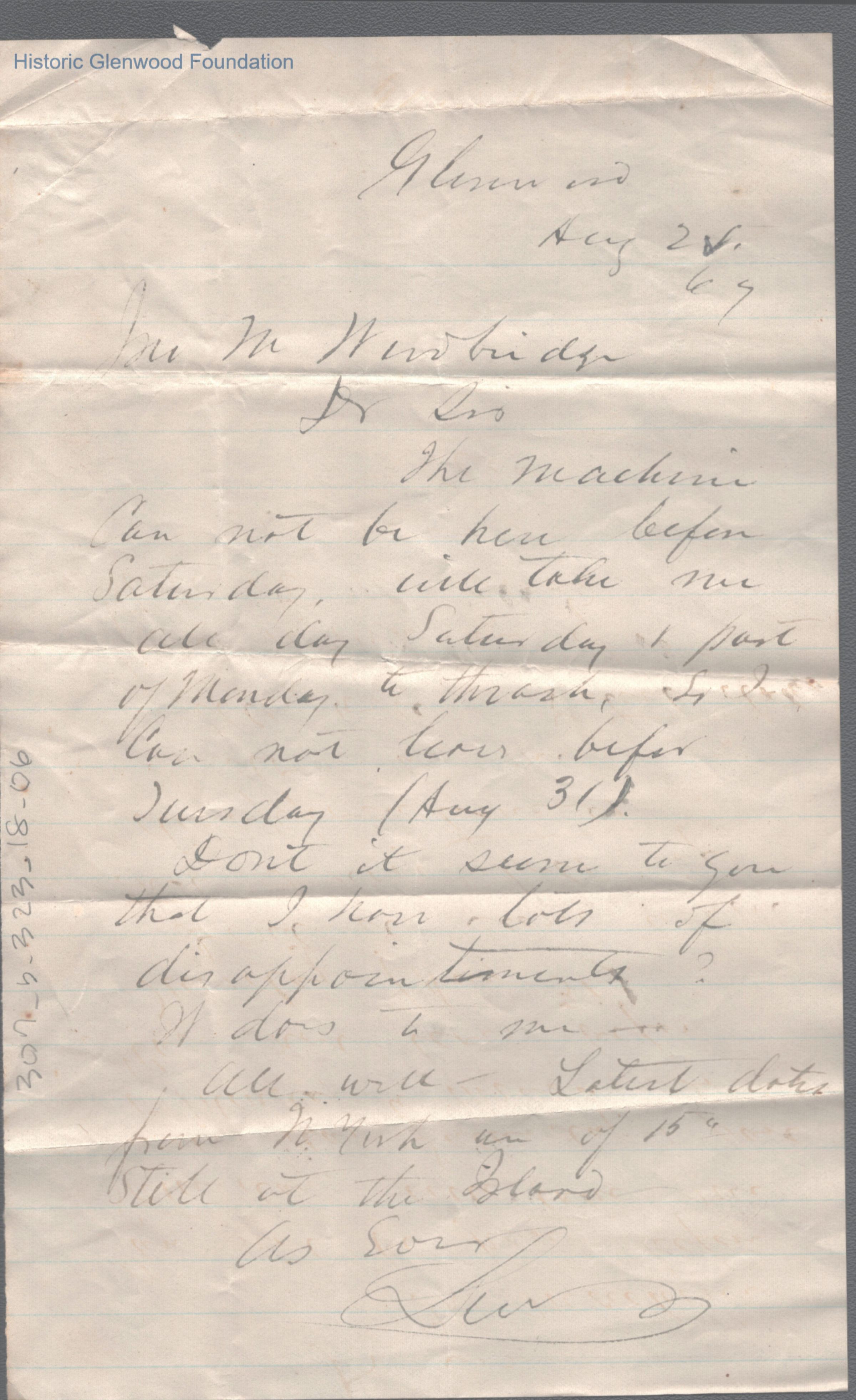 Single page letter from Lewis Summers to John M. Woodbridge, Aug 28, 1867.