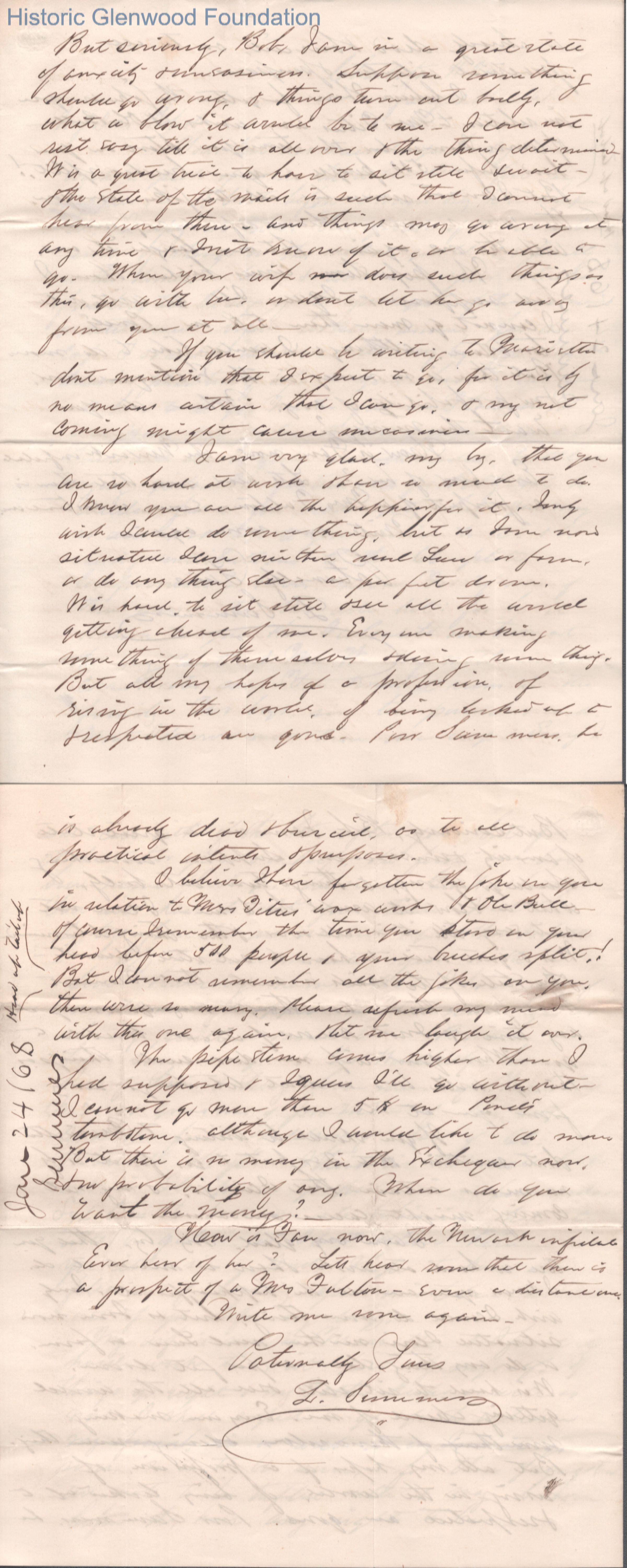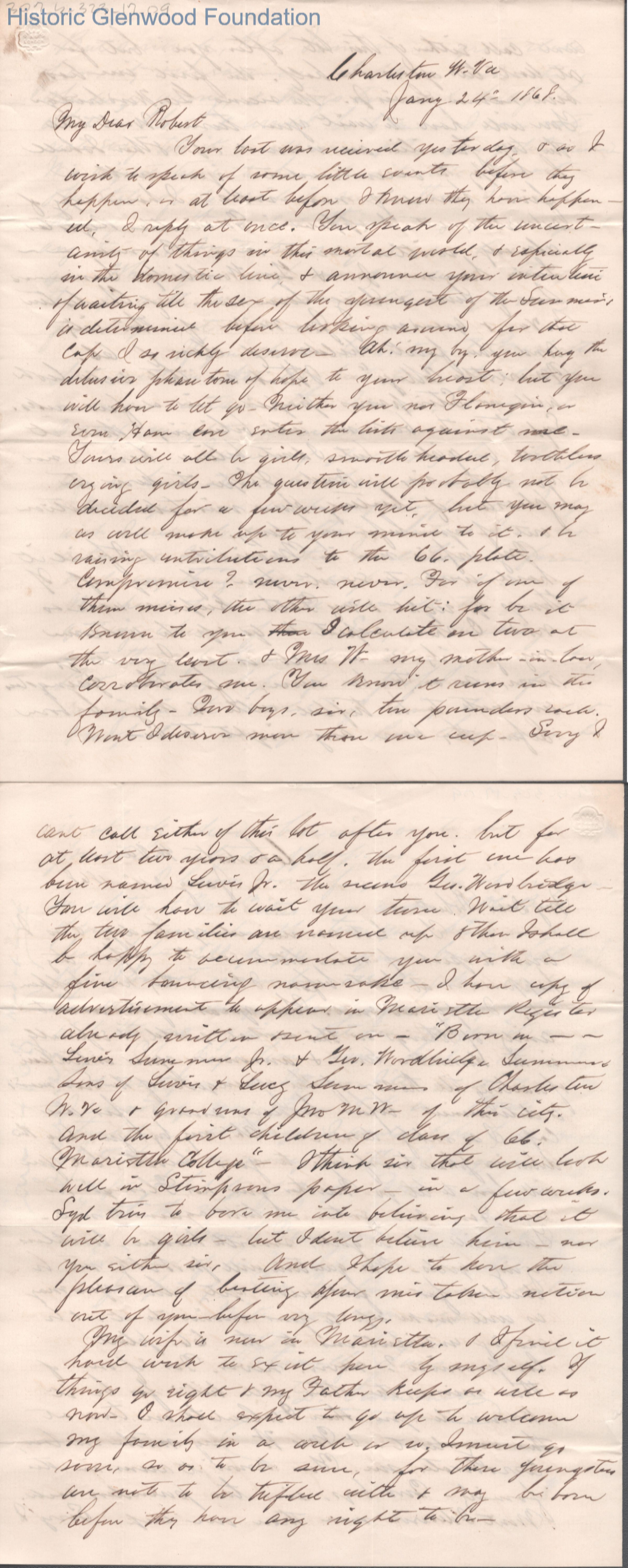 Four-page letter from Lewis Summers to Robert S. Fulton, Jan 24, 1868.