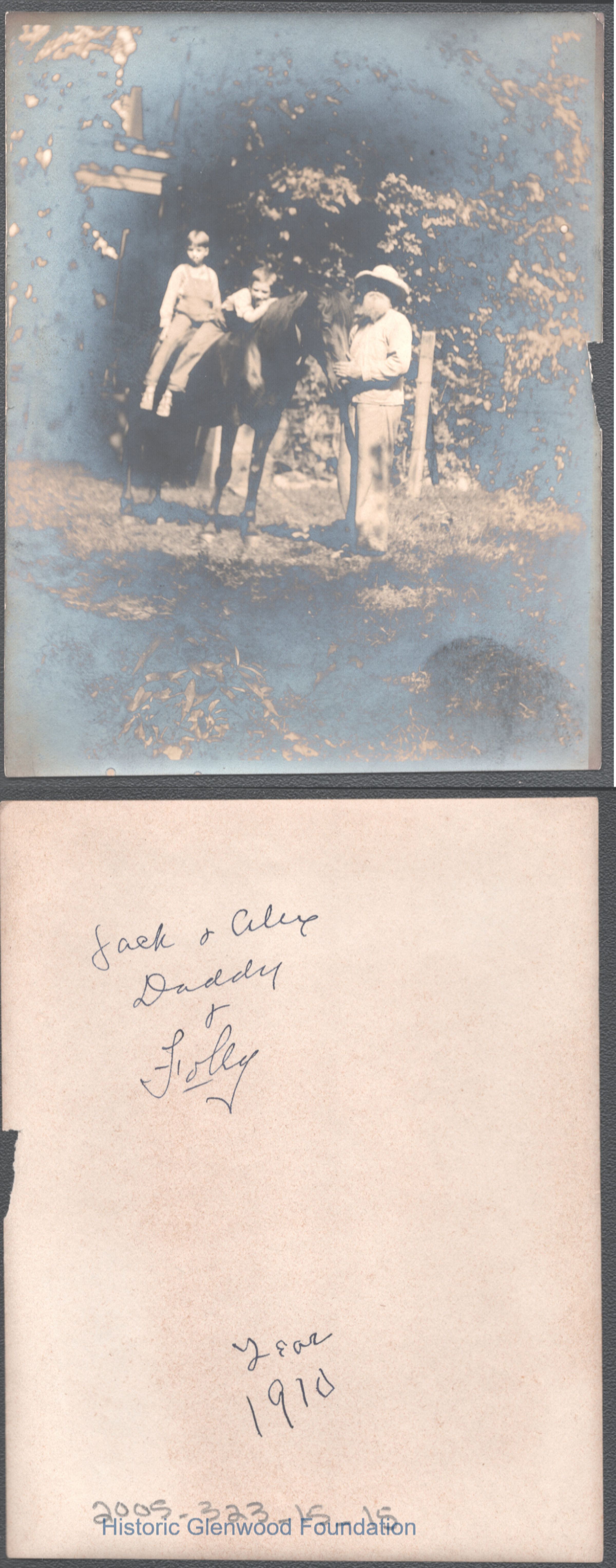 Candid photo of Lewis Summers with children and horse, c. 1910.