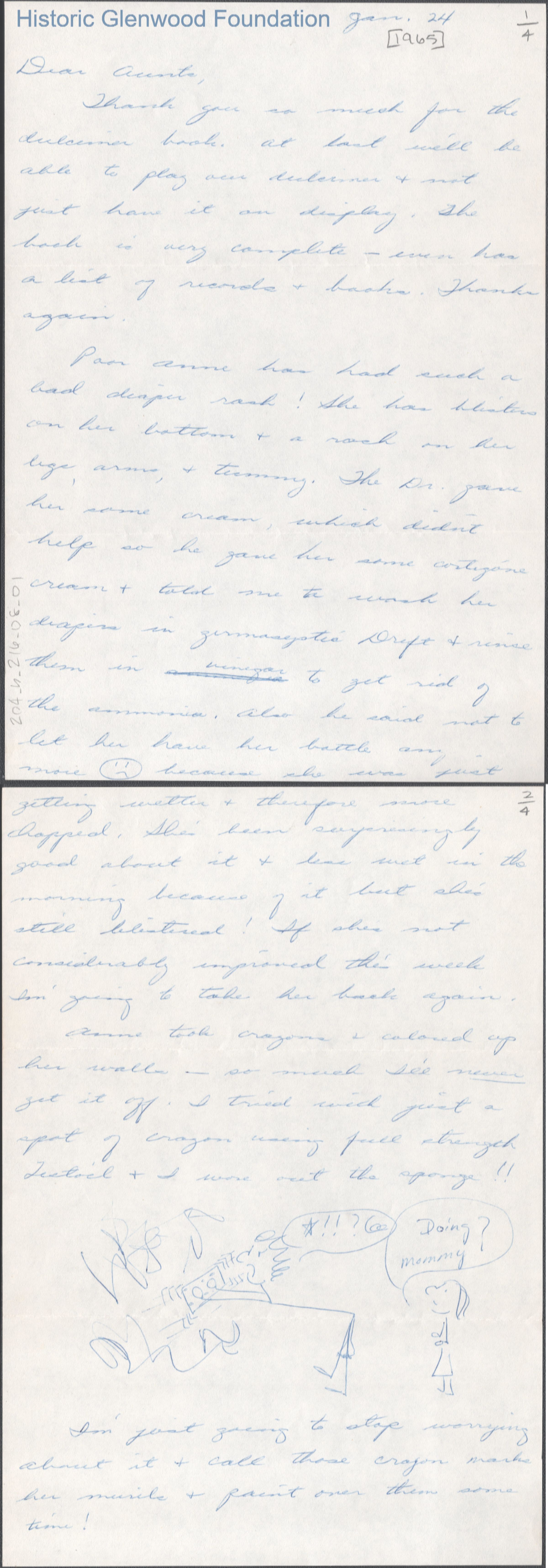 Four-page letter to Lucy S. Quarrier & Elizabeth G. Quarrier from niece Elizabeth Q. Hedrick, Jan 24, 1965