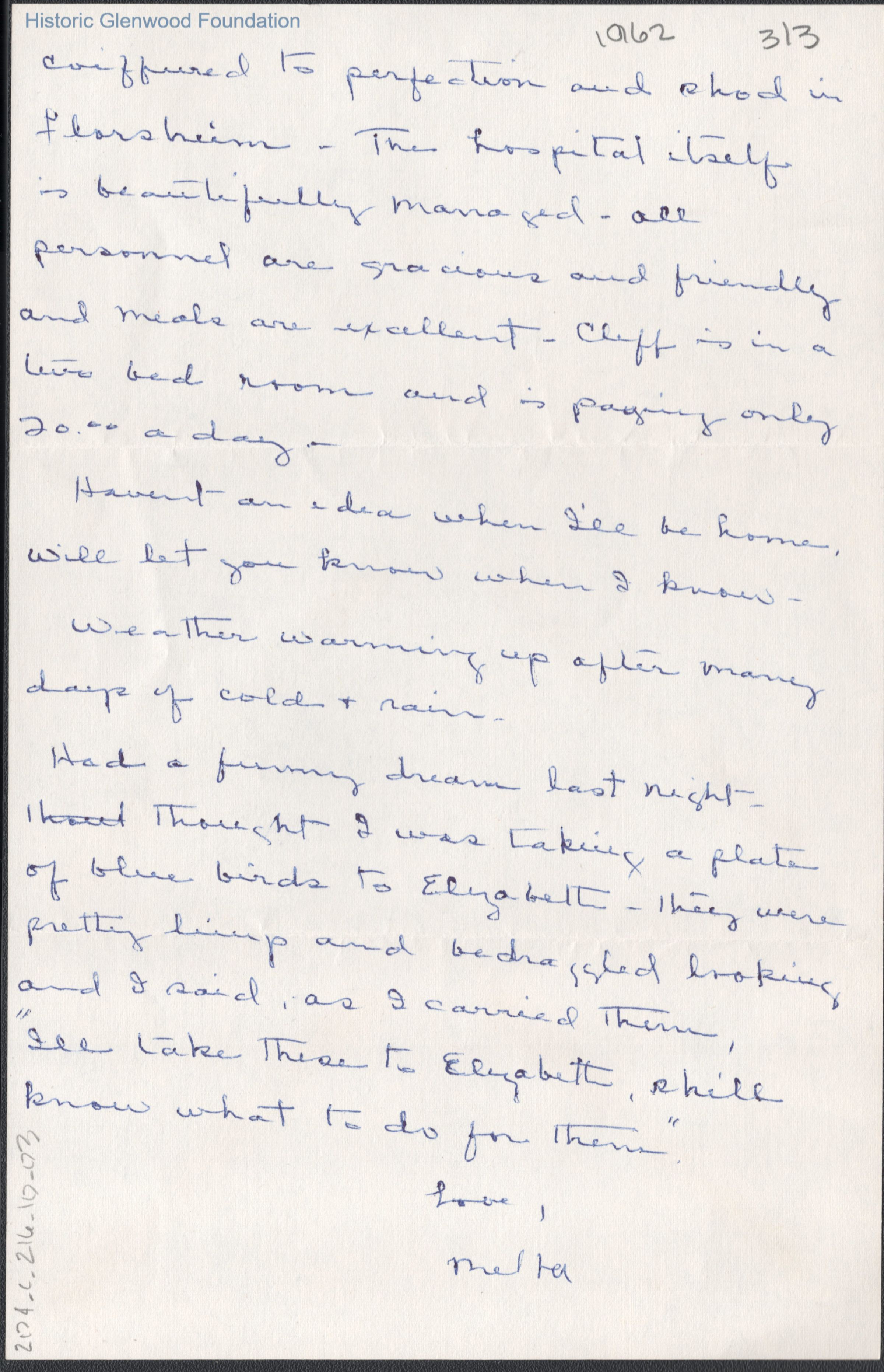 Three-page letter to Lucy S. Quarrier & Elizabeth G. Quarrier from Melba D. Quarrier, c. 1962.