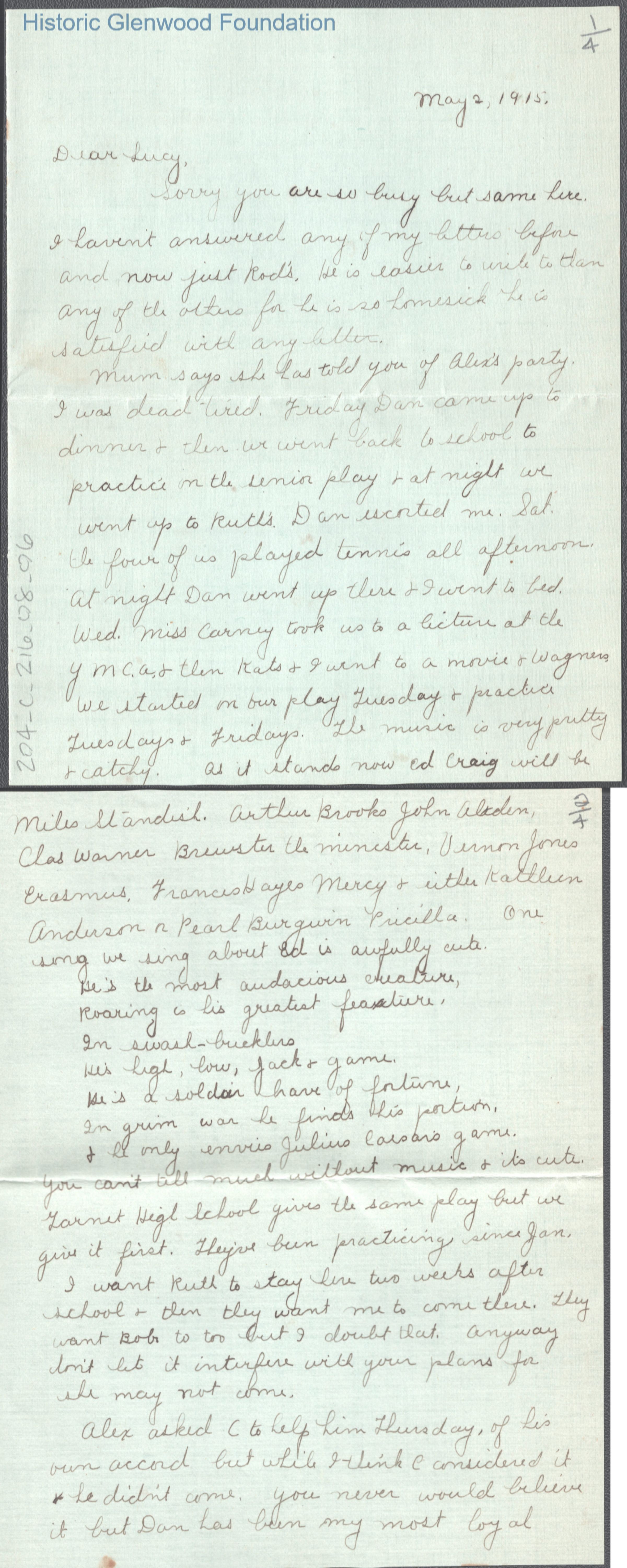 Four-page letter to Lucy S. Quarrier from Elizabeth G. Quarrier, May 2, 1915.