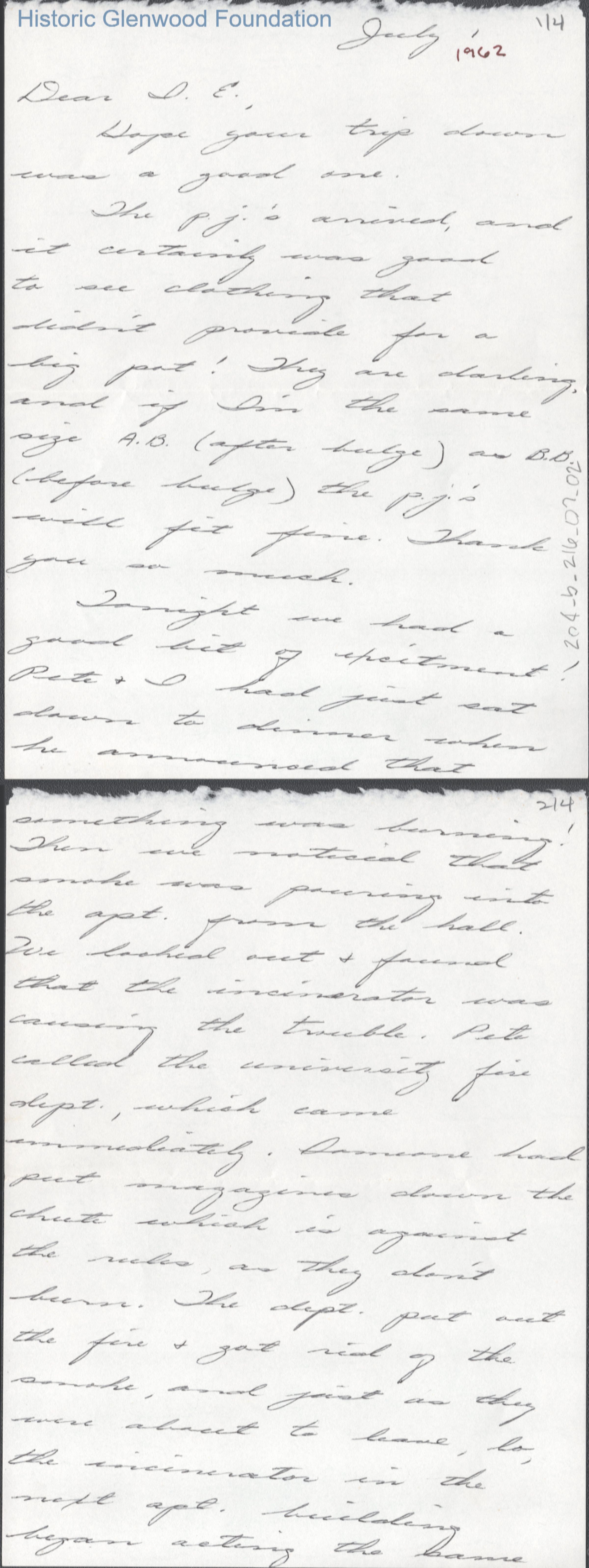 Lucy S. Quarrier from Elizabeth Q. Hedrick, Jul 1, 1962