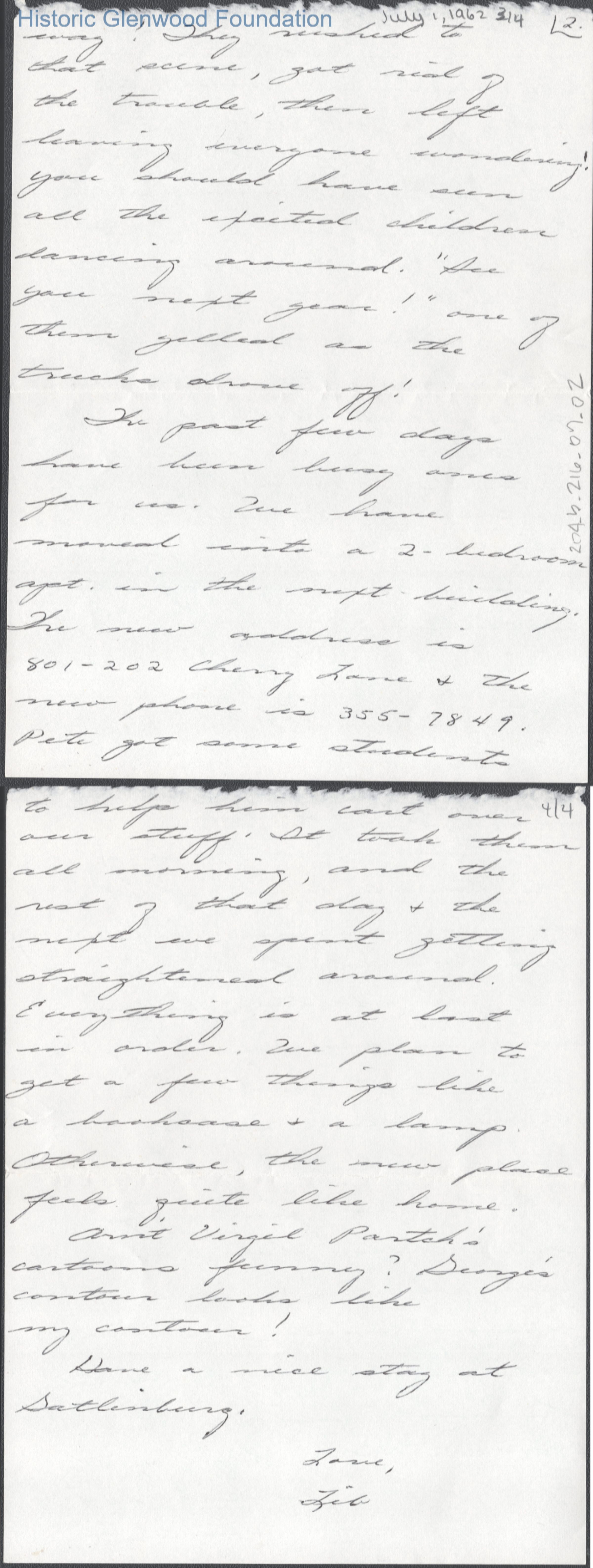 Four-page letter to Lucy S. Quarrier from Elizabeth Q. Hedrick, Jul 1, 1962.