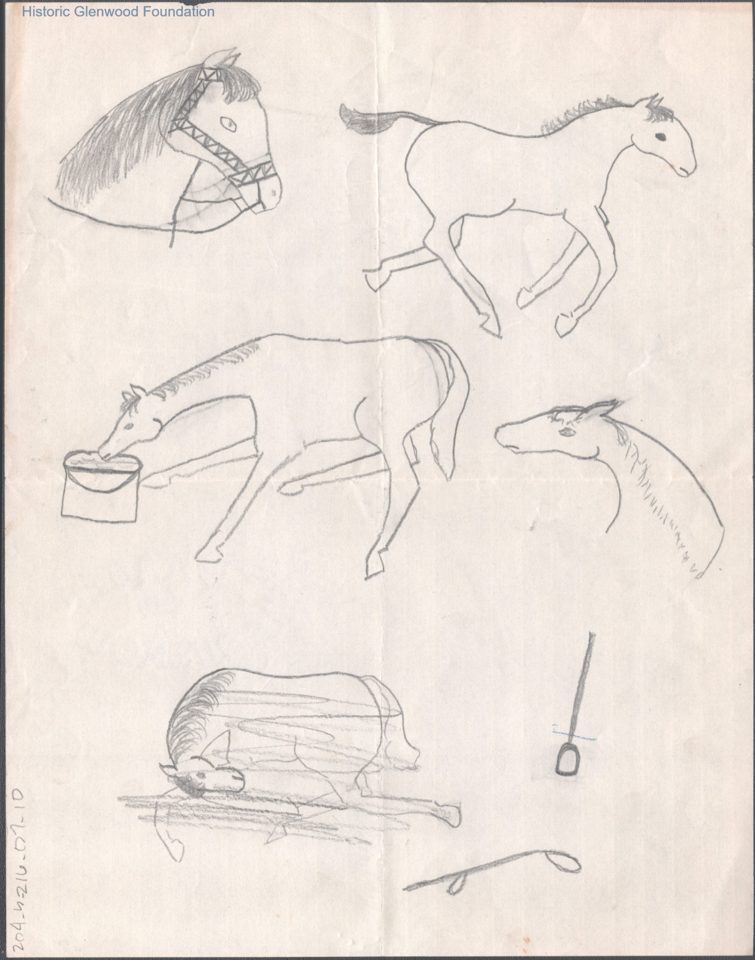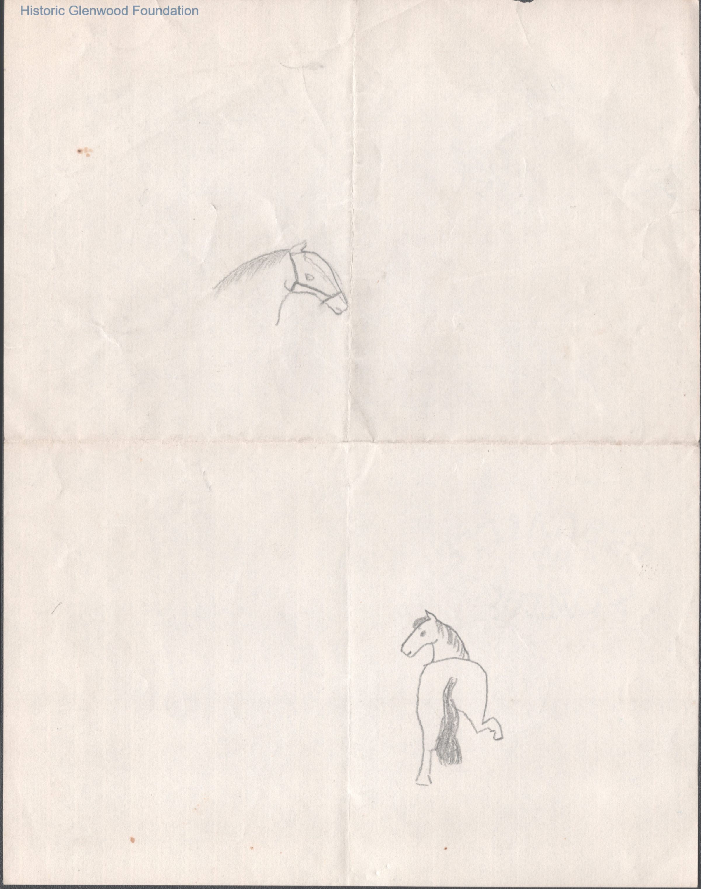 Two pages of equestrian sketches to Lucy S. Quarrier from Elizabeth Q. Hedrick, unknown date.