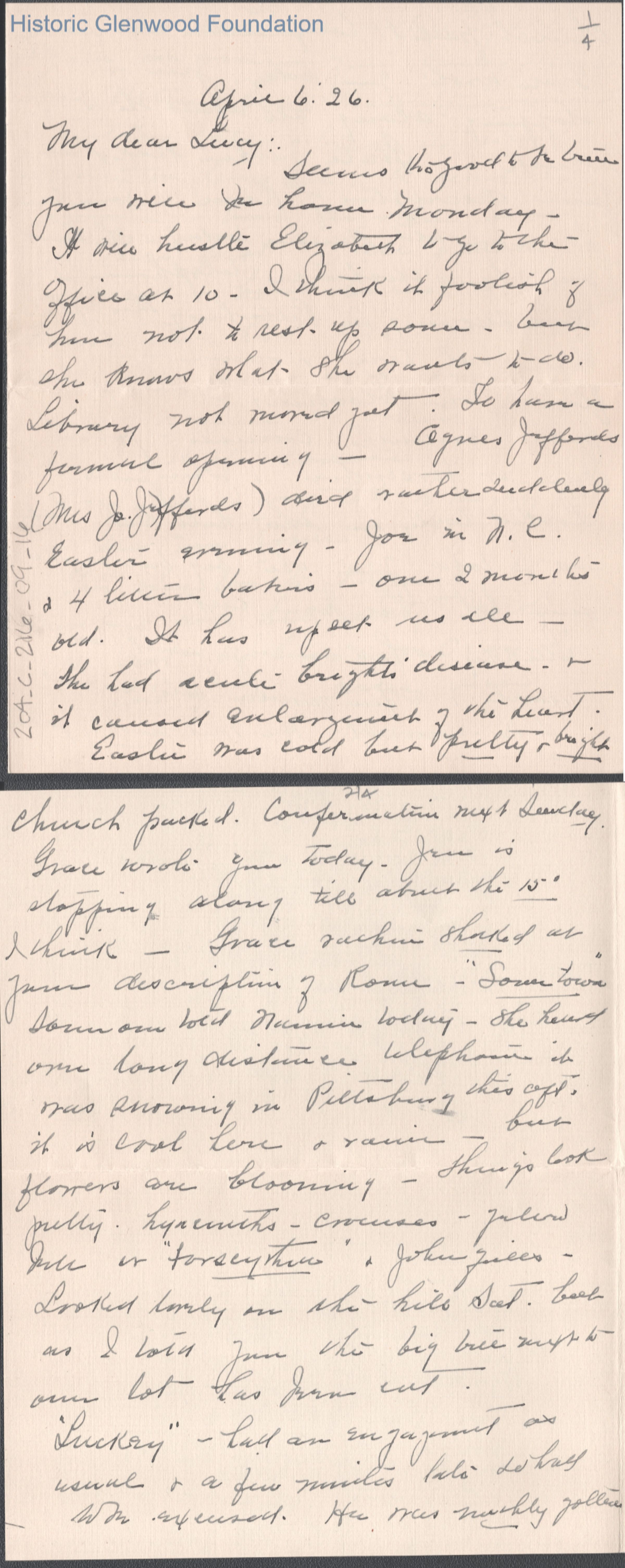 Lucy S. Quarrier from Elizabeth S. Quarrier, Apr 6, 1926