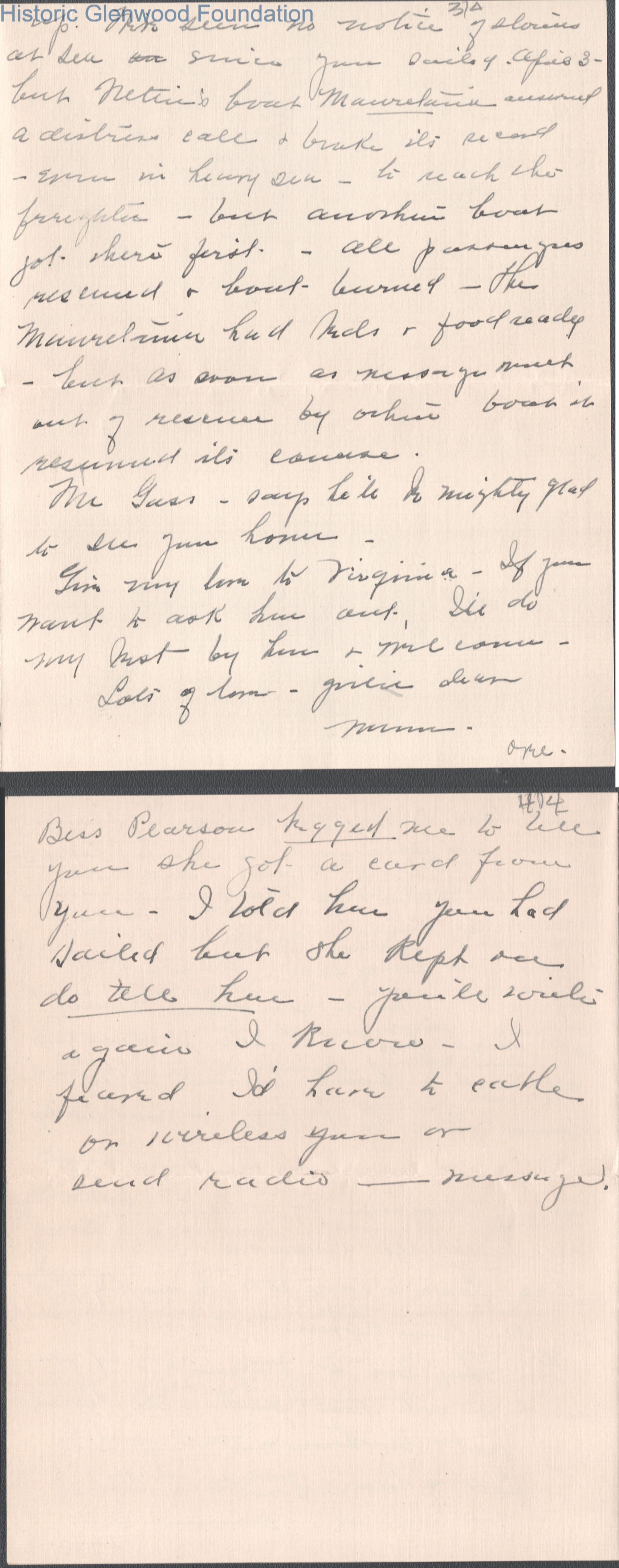Four-page letter to Lucy S. Quarrier from Elizabeth S. Quarrier, Apr 6, 1926.