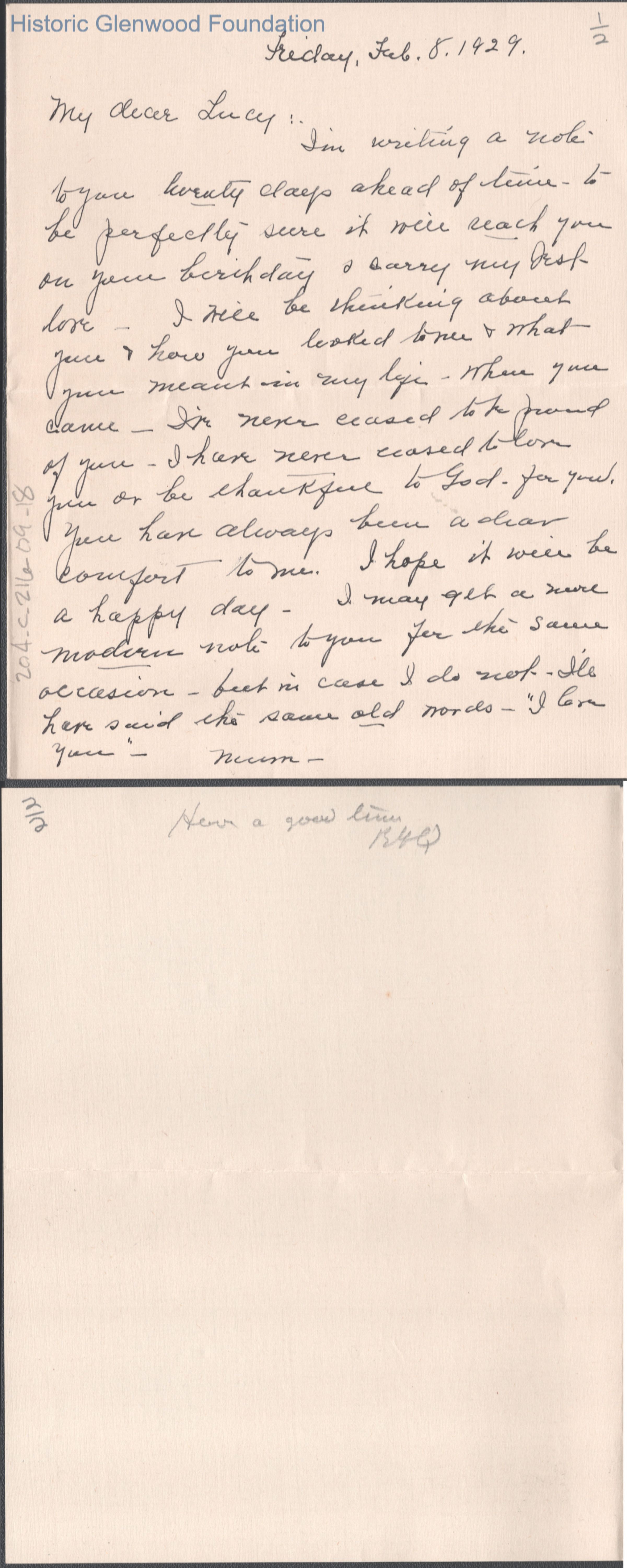 Lucy S. Quarrier from Elizabeth S. Quarrier, Feb 8, 1929