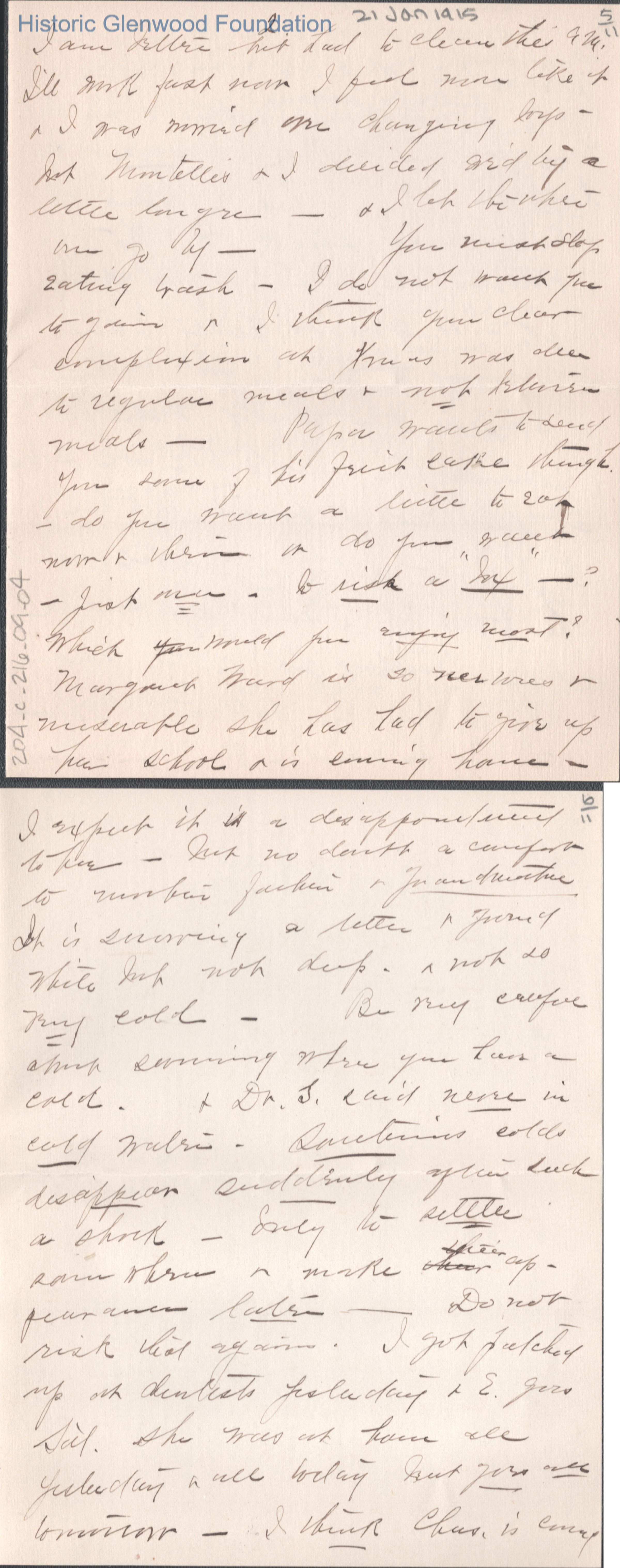 Eleven-page letter to Lucy S. Quarrier from Elizabeth S. Quarrier, Jan 21, 1915.