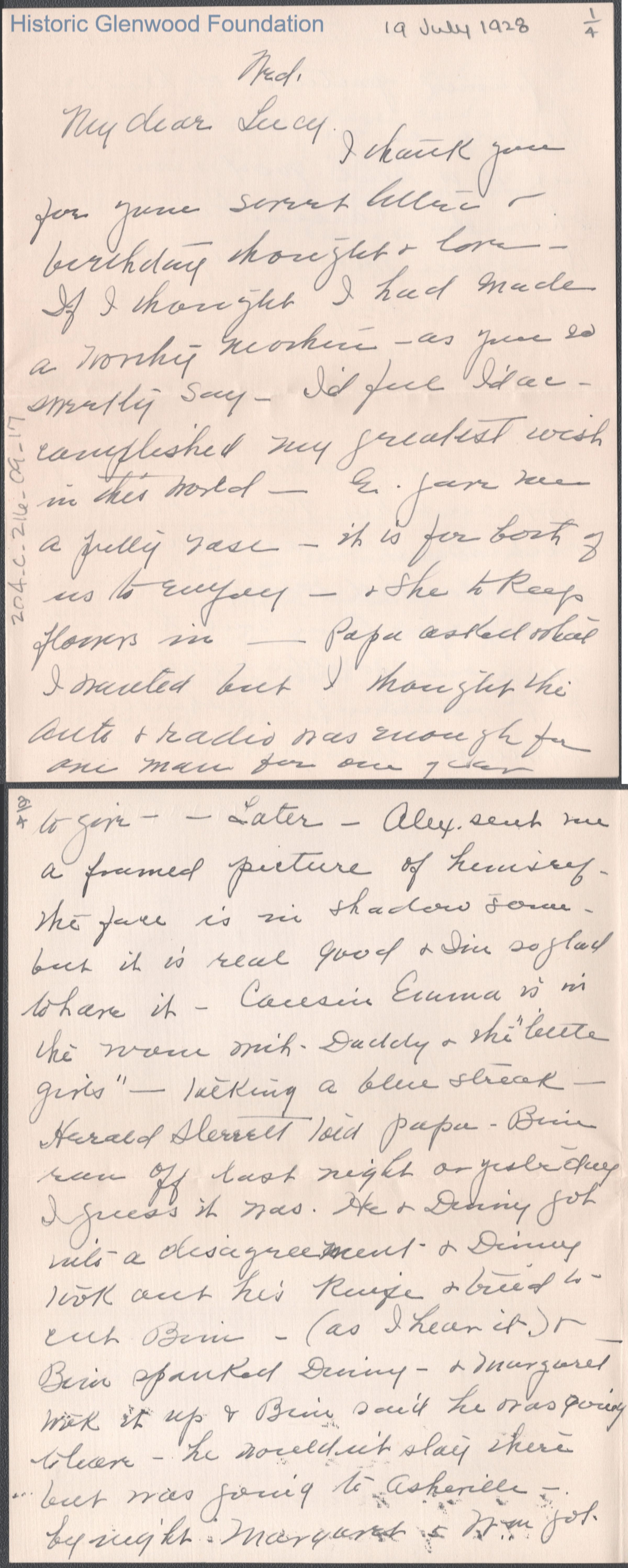 Lucy S. Quarrier from Elizabeth S. Quarrier, Jul 19, 1928