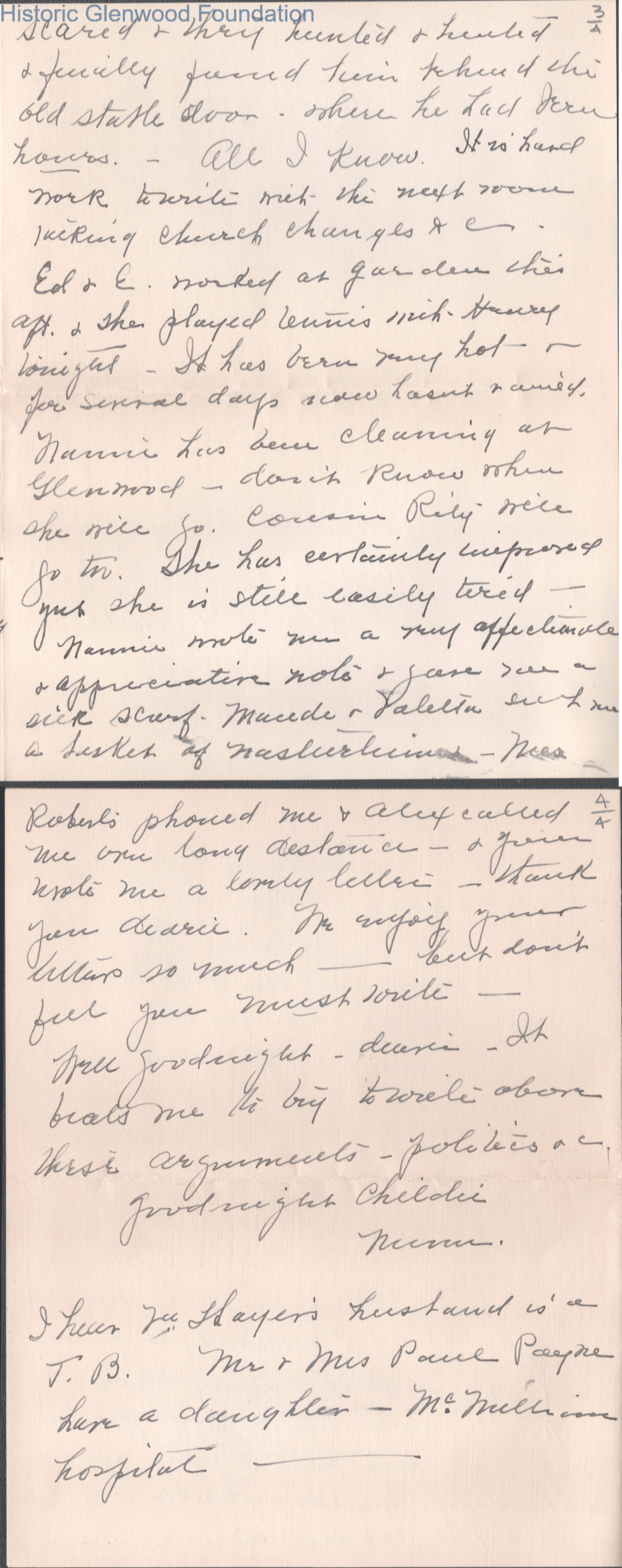 Four-page letter to Lucy S. Quarrier from Elizabeth S. Quarrier, Jul 19, 1928.