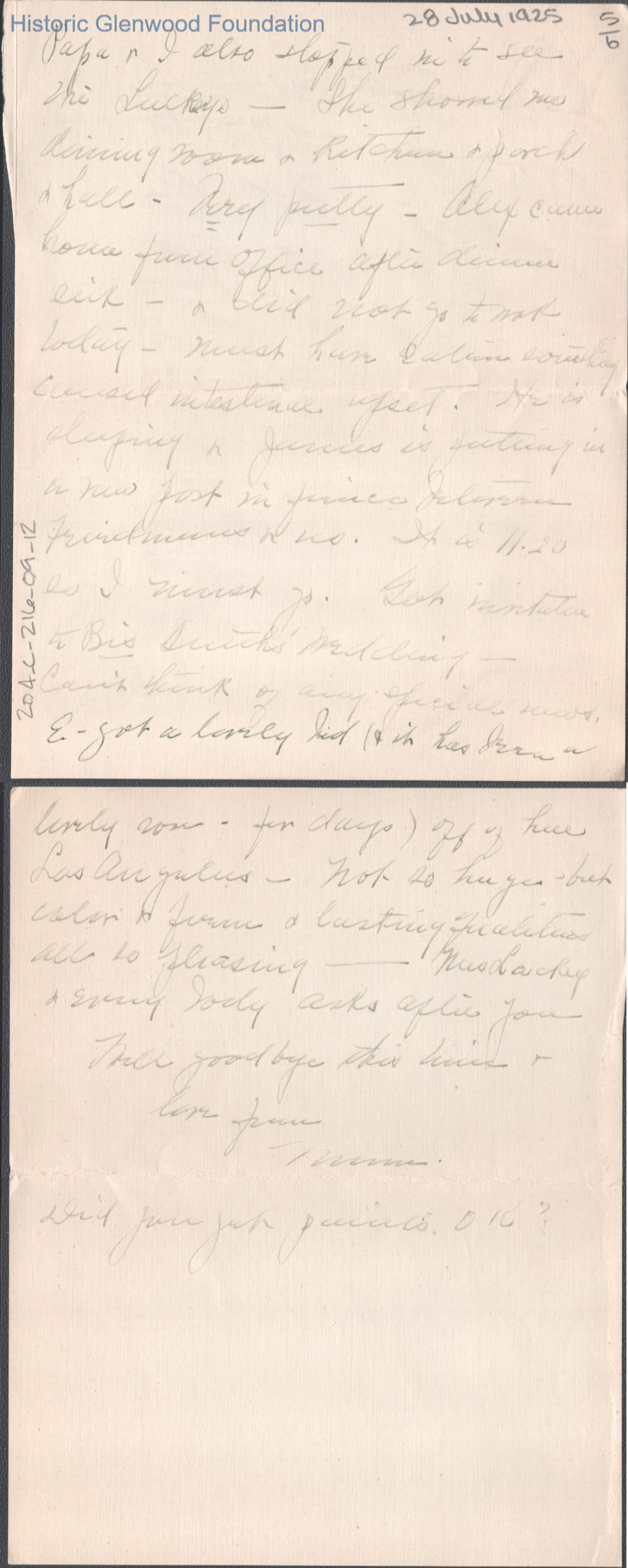 Six-page letter to Lucy S. Quarrier from Elizabeth S. Quarrier, Jul 28, 1925.