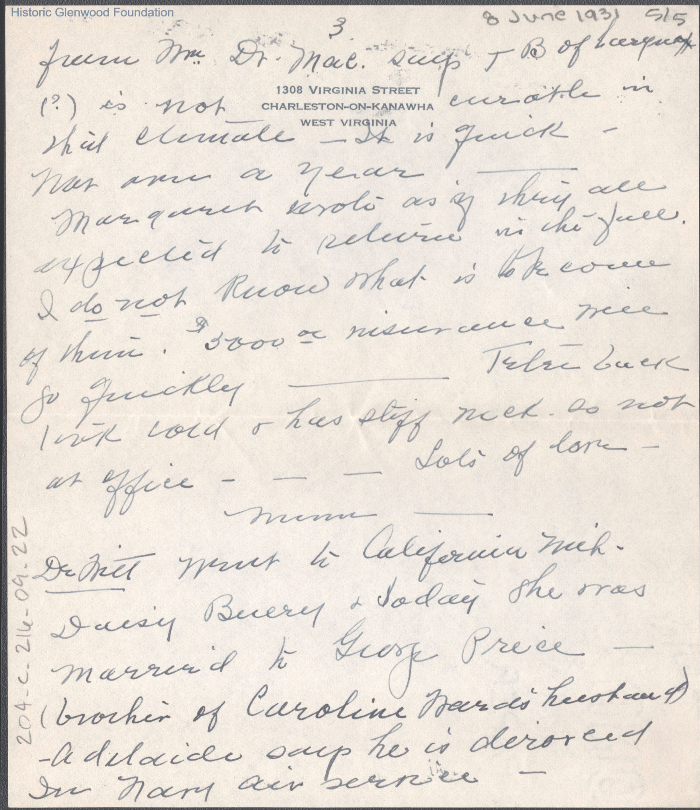 Lucy S. Quarrier from Elizabeth S. Quarrier, Jun 8, 1931
