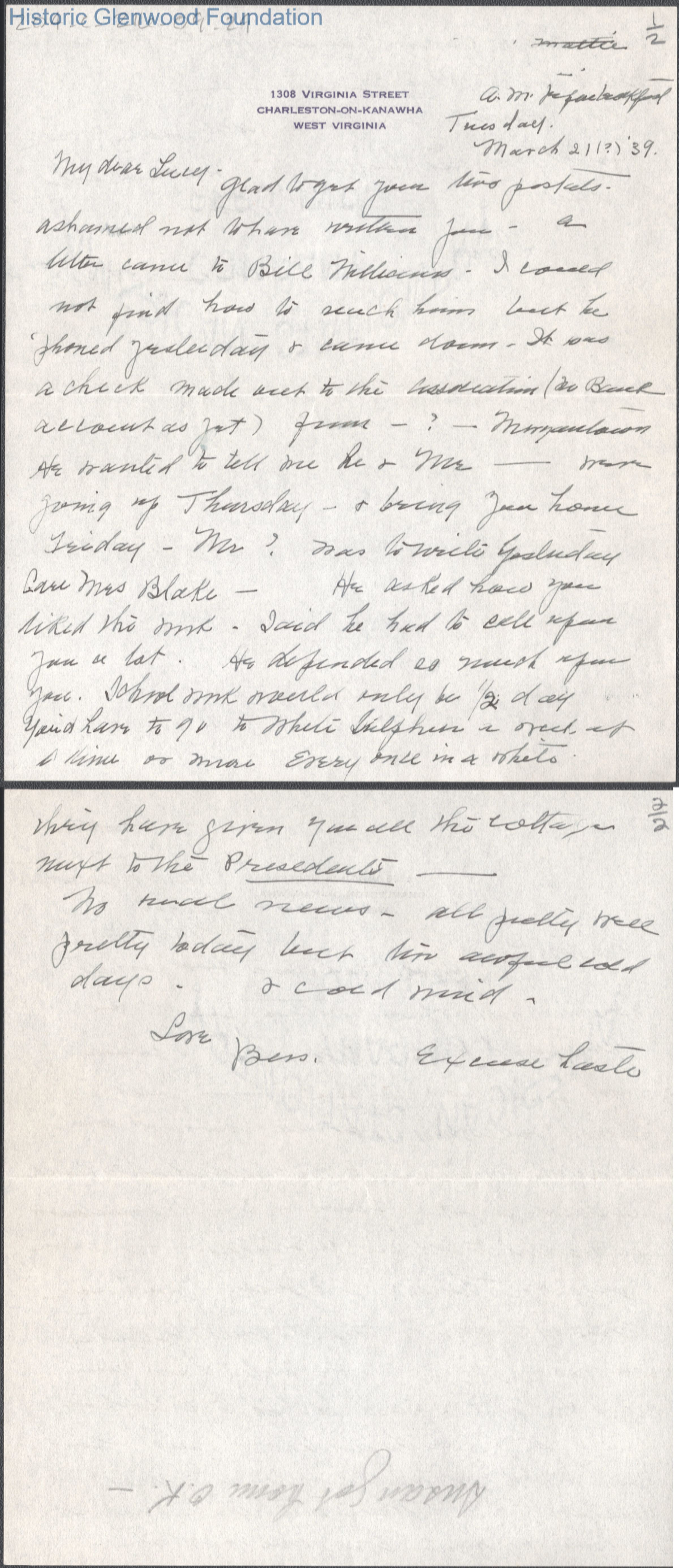 Lucy S. Quarrier from Elizabeth S. Quarrier, Mar 21, 1939
