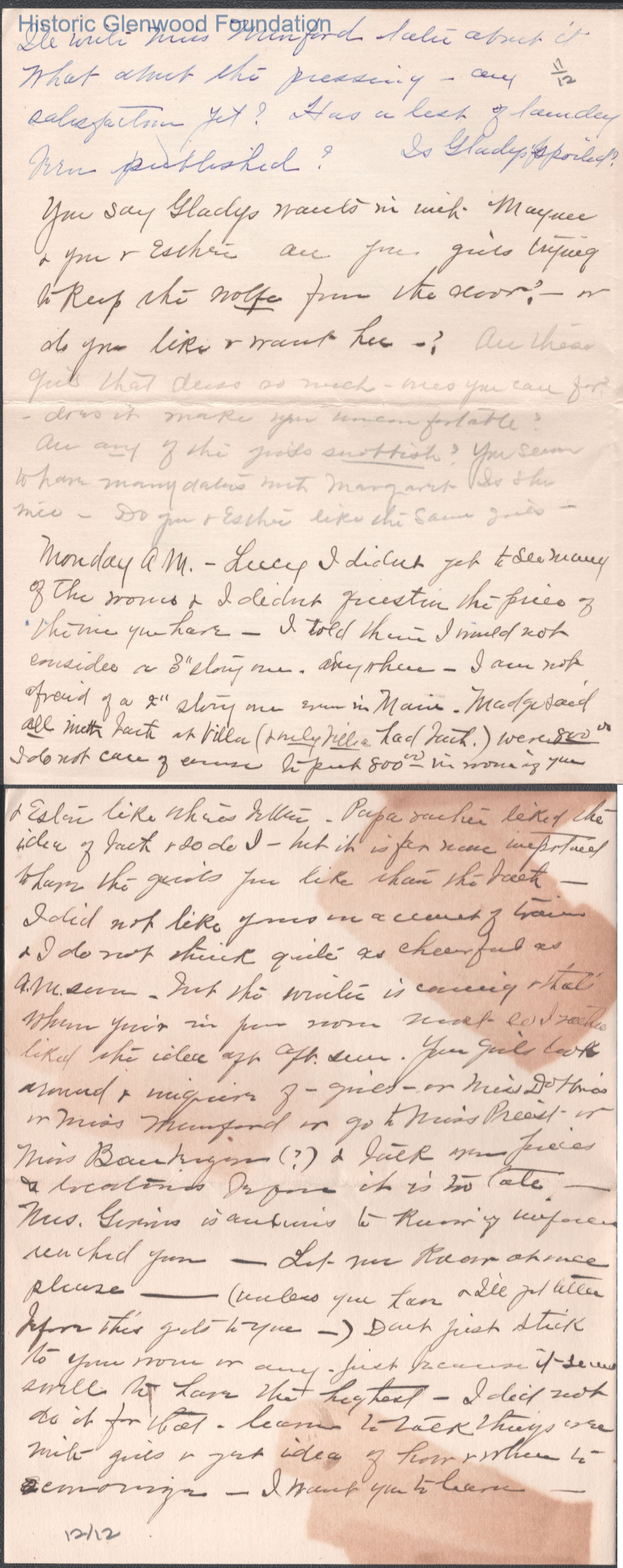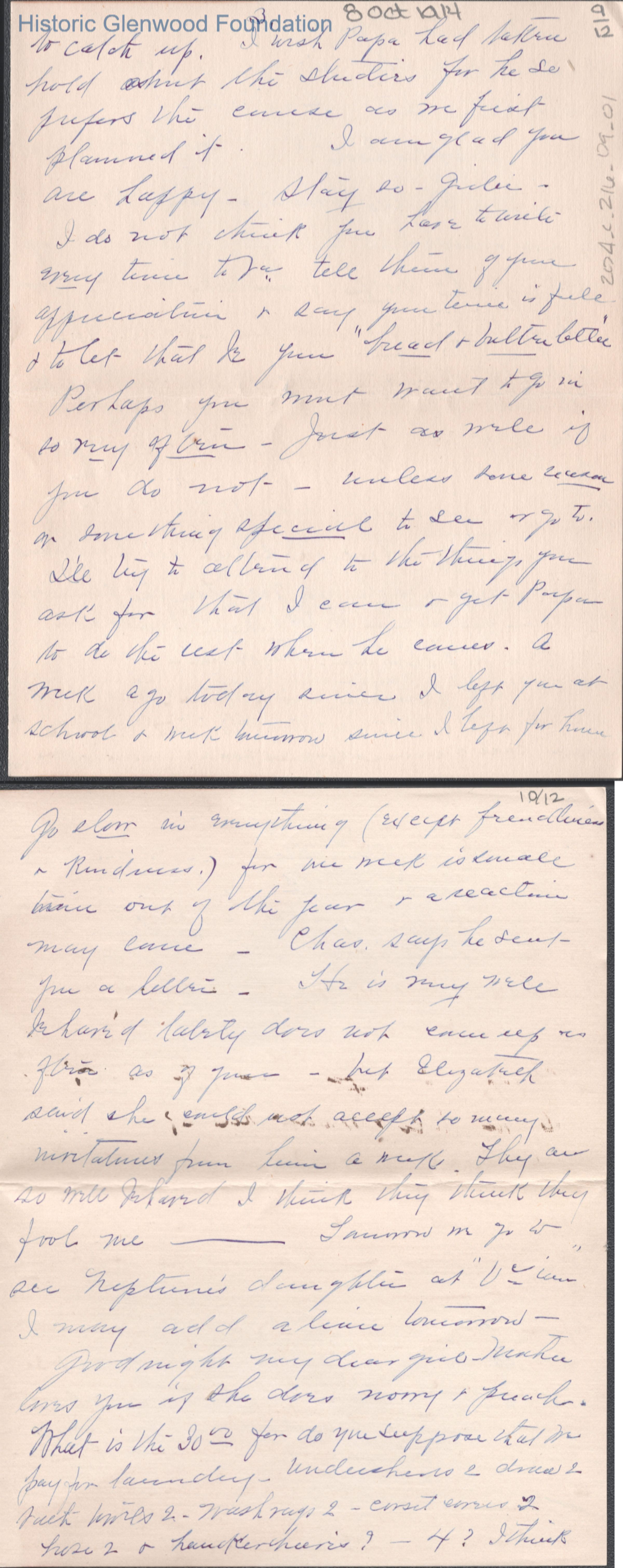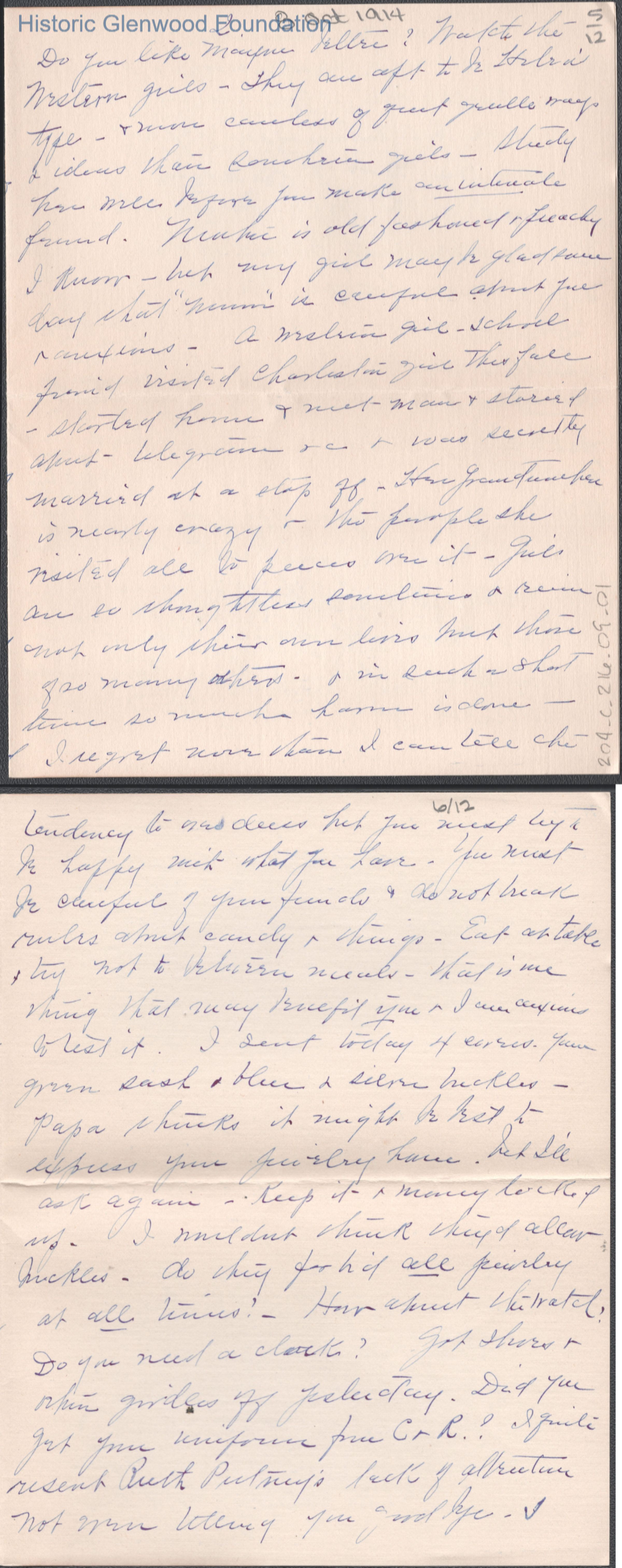 Twelve-page letter to Lucy S. Quarrier from Elizabeth S. Quarrier, Oct 8, 1914.