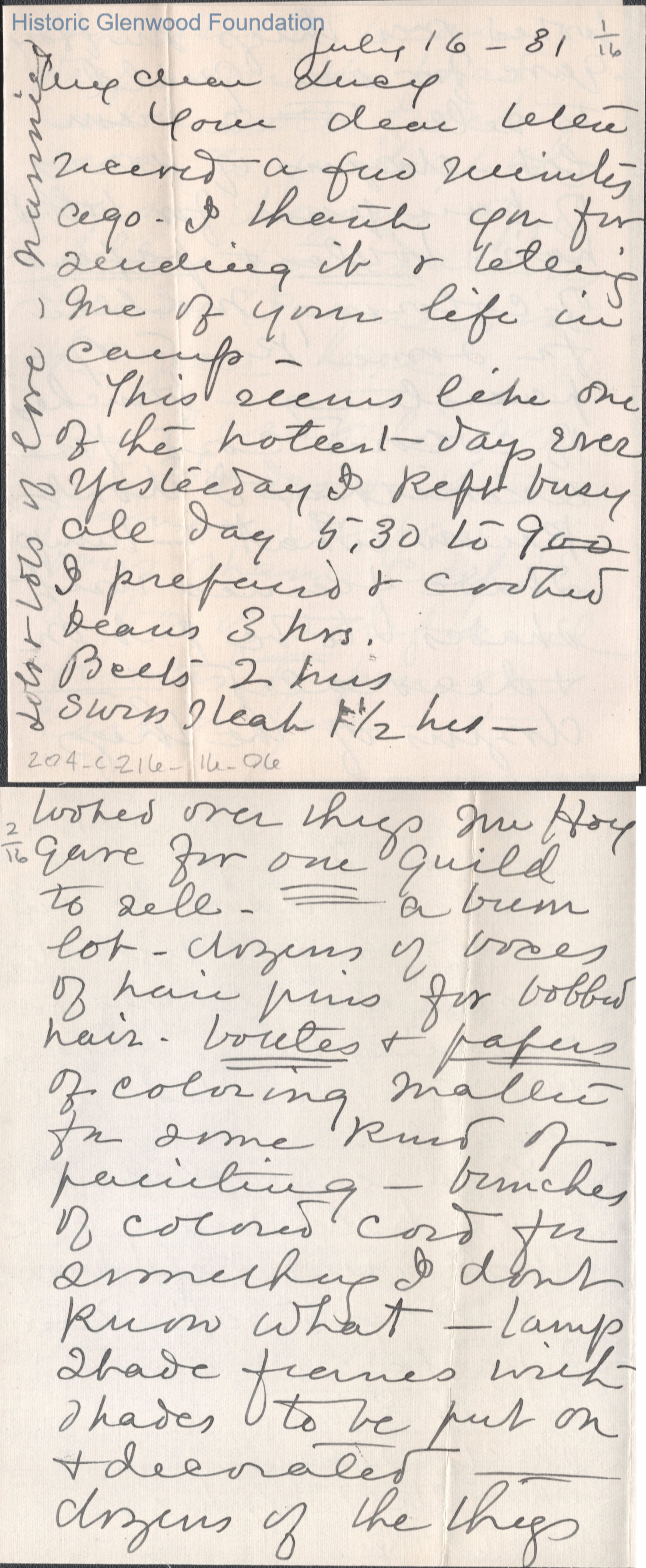 Sixteen-page letter to Lucy S. Quarrier from Lucy W. Summers, Jul 16, 1931.