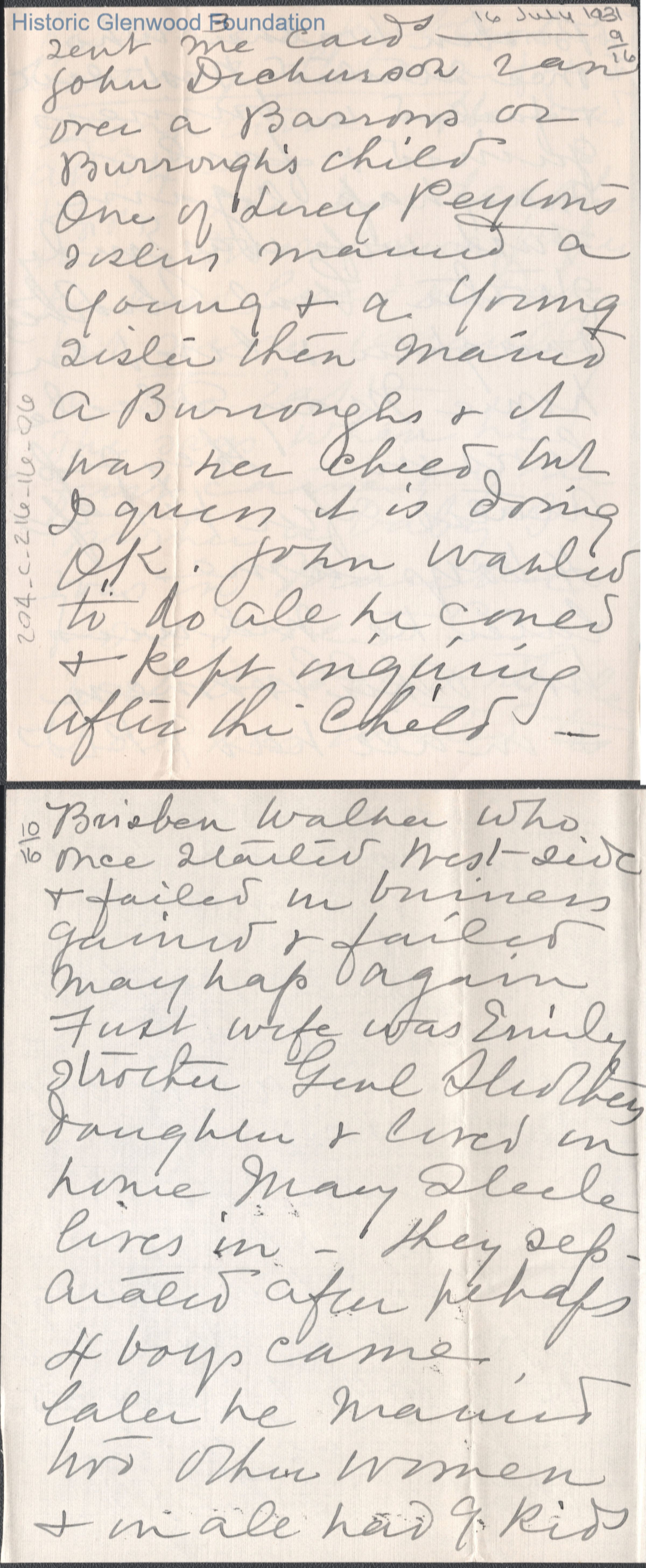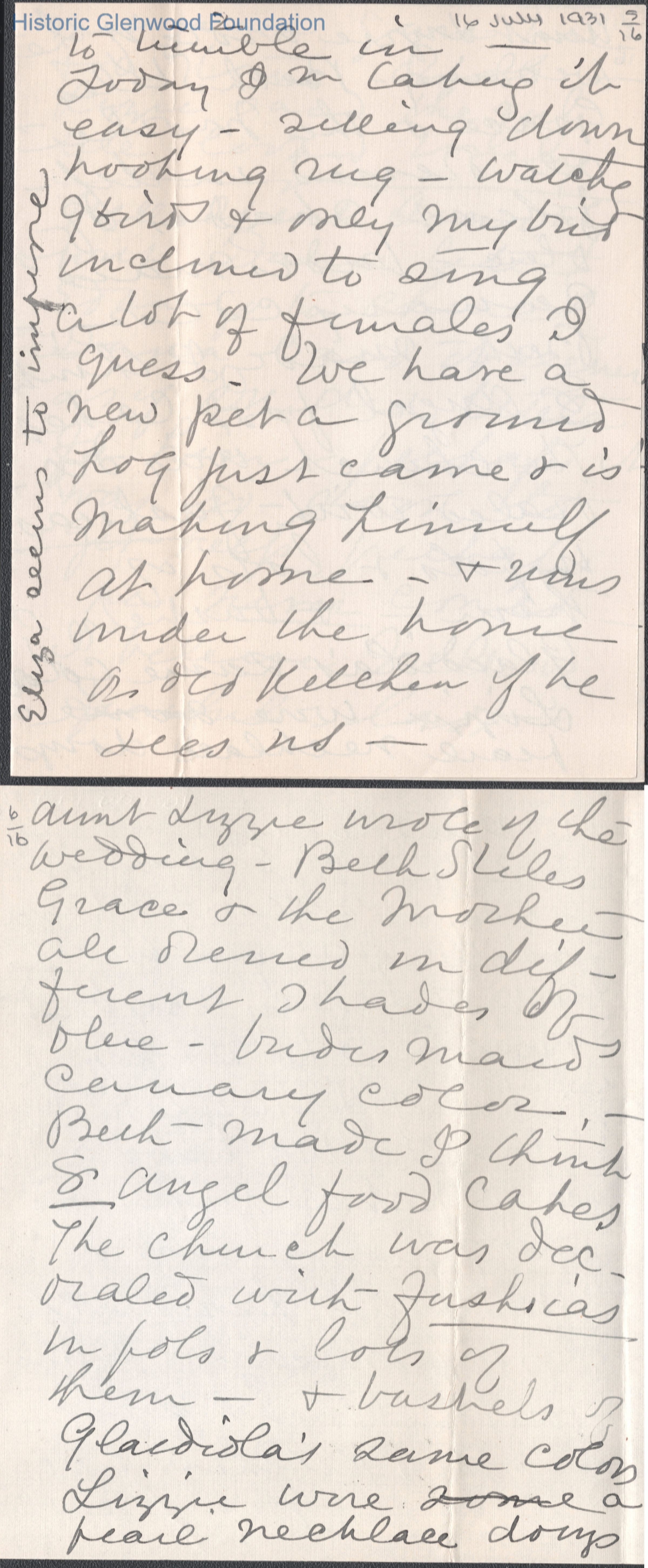 Lucy S. Quarrier from Lucy W. Summers, Jul 16, 1931