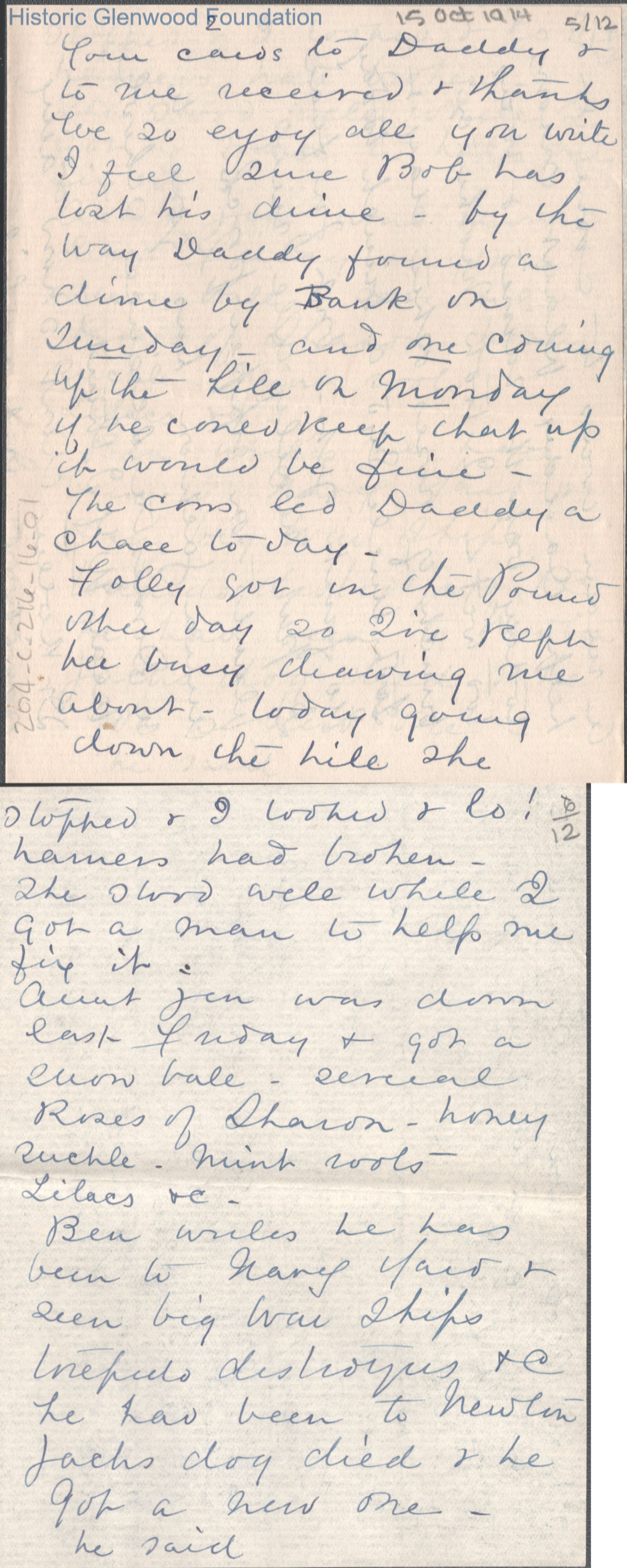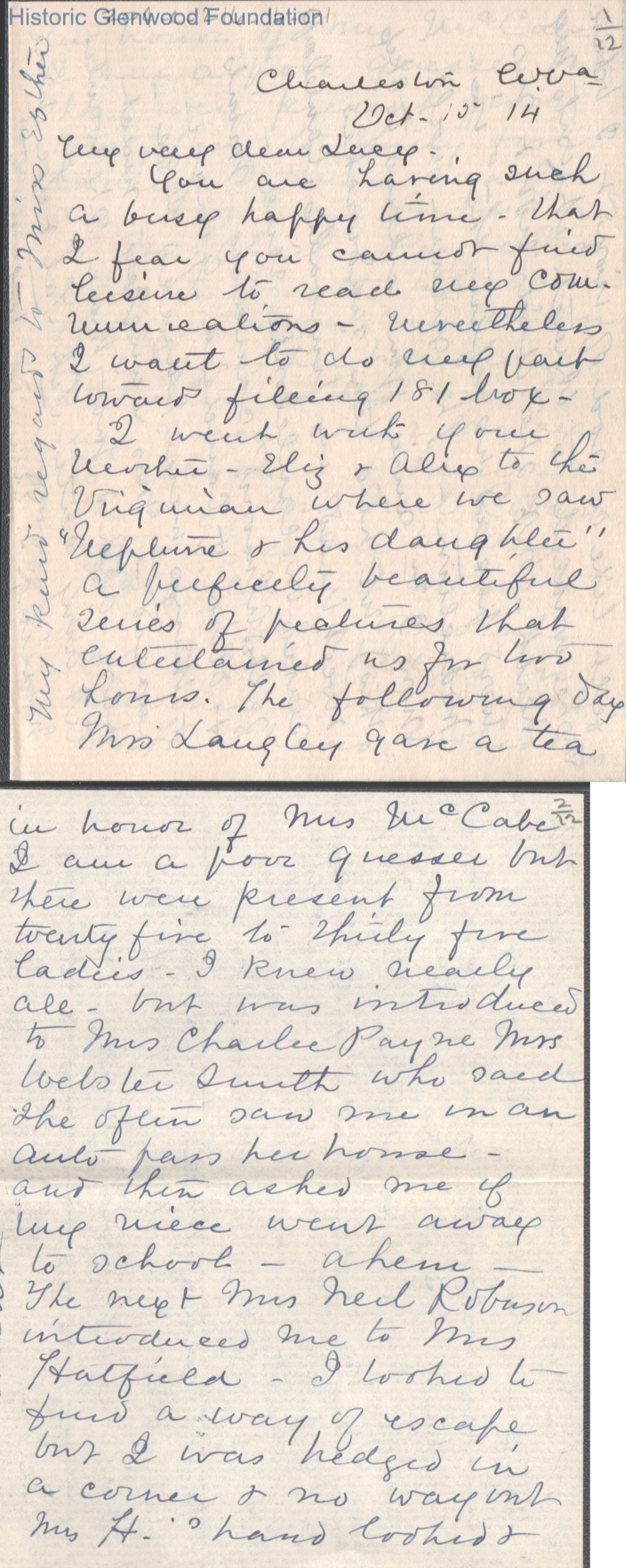Twelve-page letter to Lucy S. Quarrier from Lucy W. Summers, Oct 15, 1914.