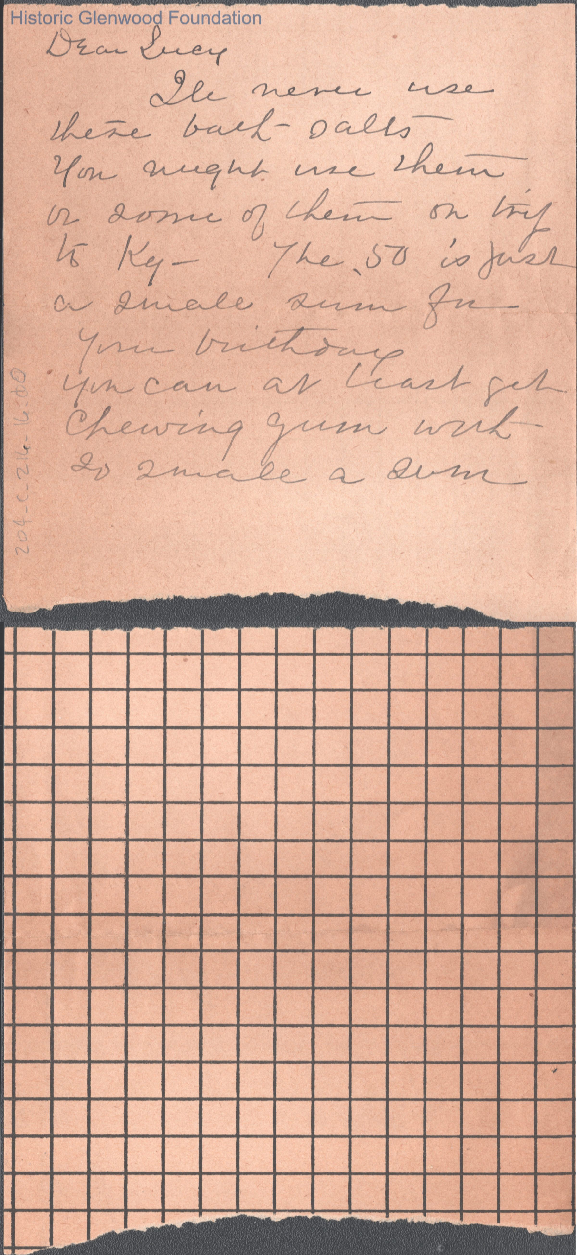 Single page note to Lucy S. Quarrier from Lucy W. Summers, unknown date.