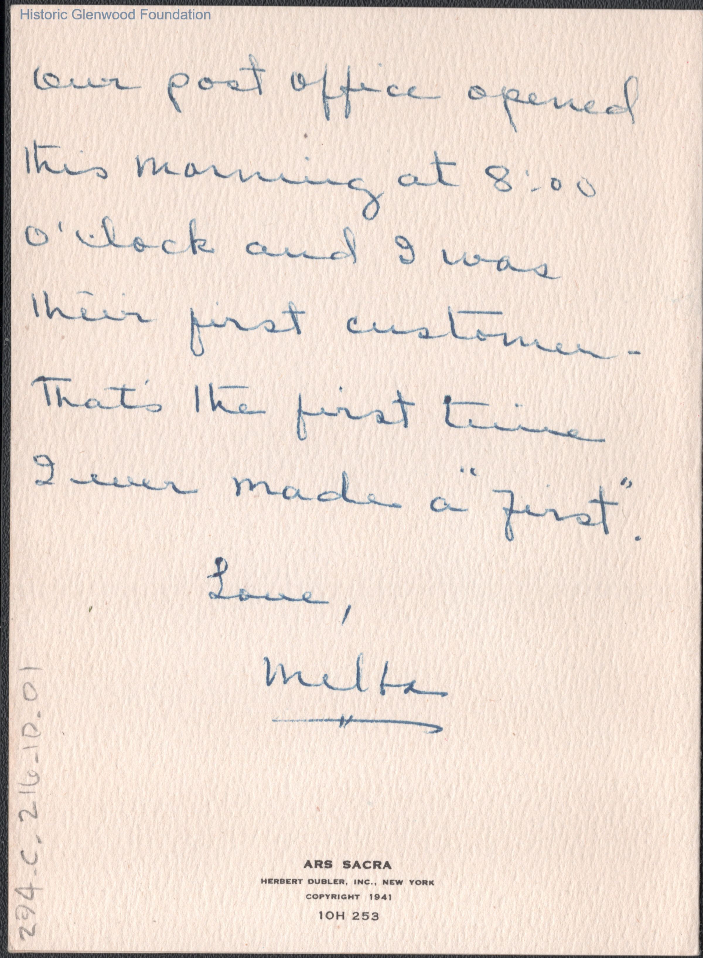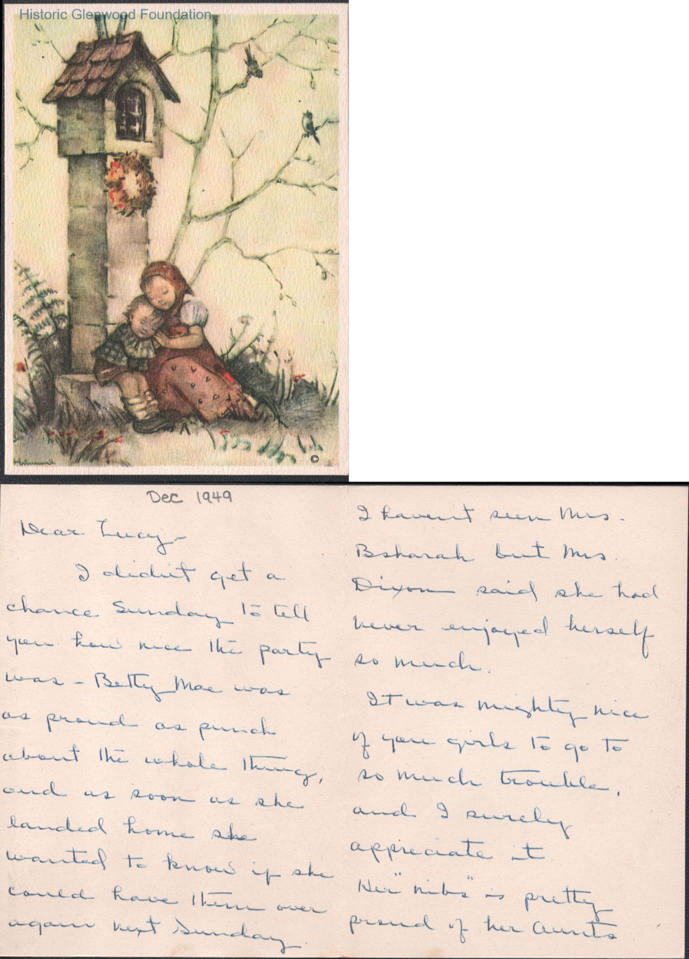 Three-page note card to Lucy S. Quarrier from Melba D. Quarrier, Dec 1949.