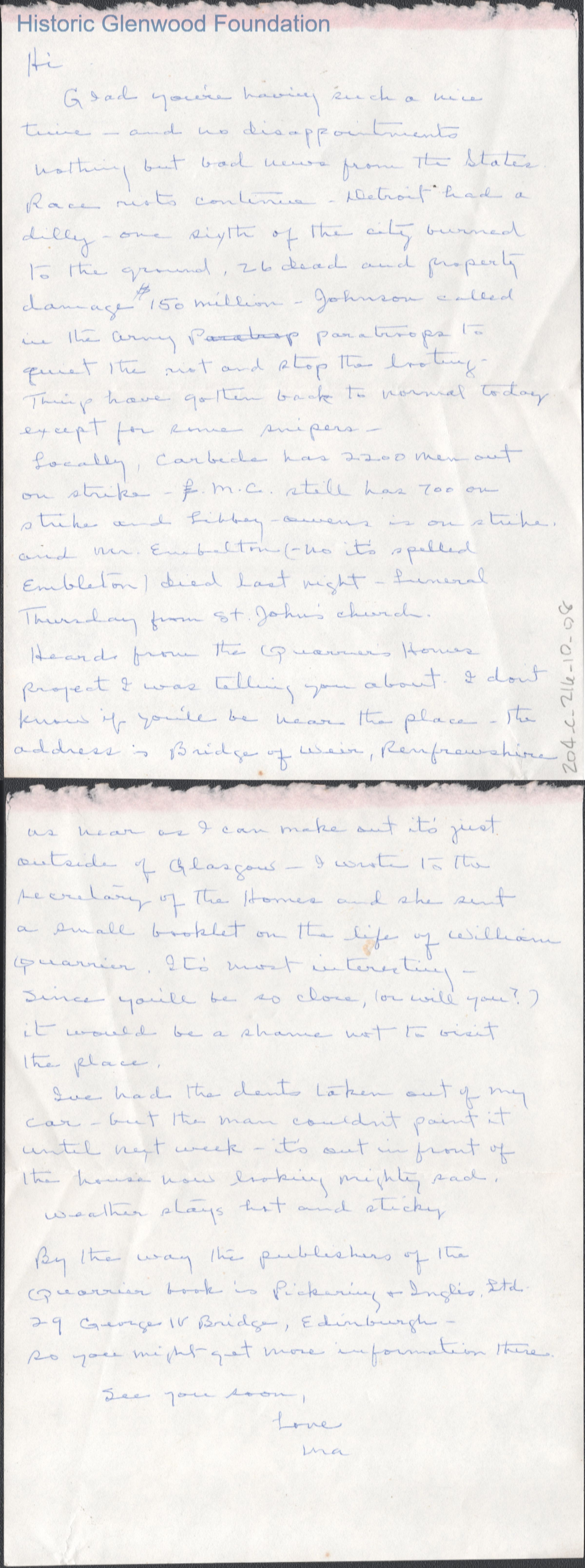 Two-page letter to Lucy S. Quarrier from Melba D. Quarrier, unknown date.