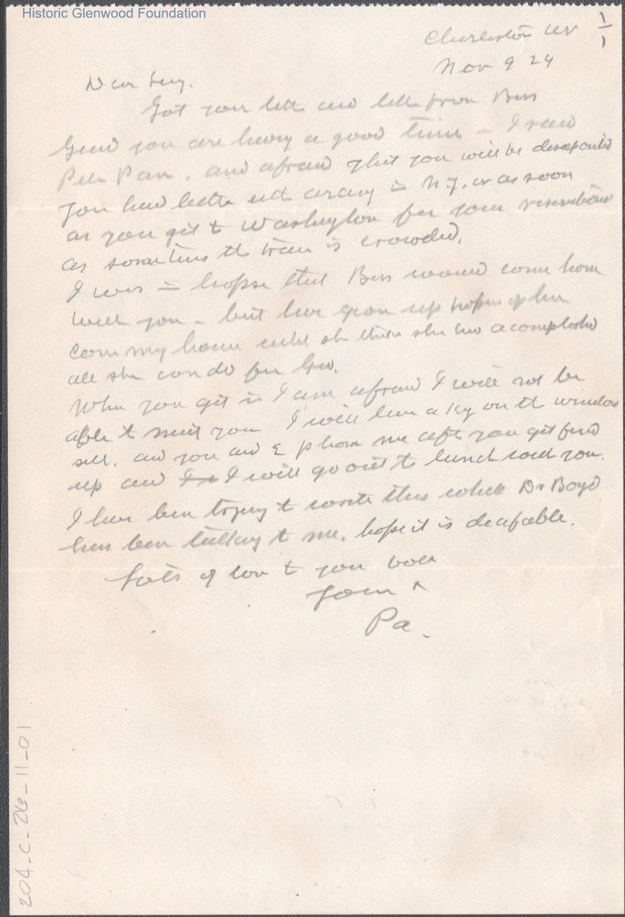 Lucy S. Quarrier from Russell G. Quarrier, Nov 9, 1924