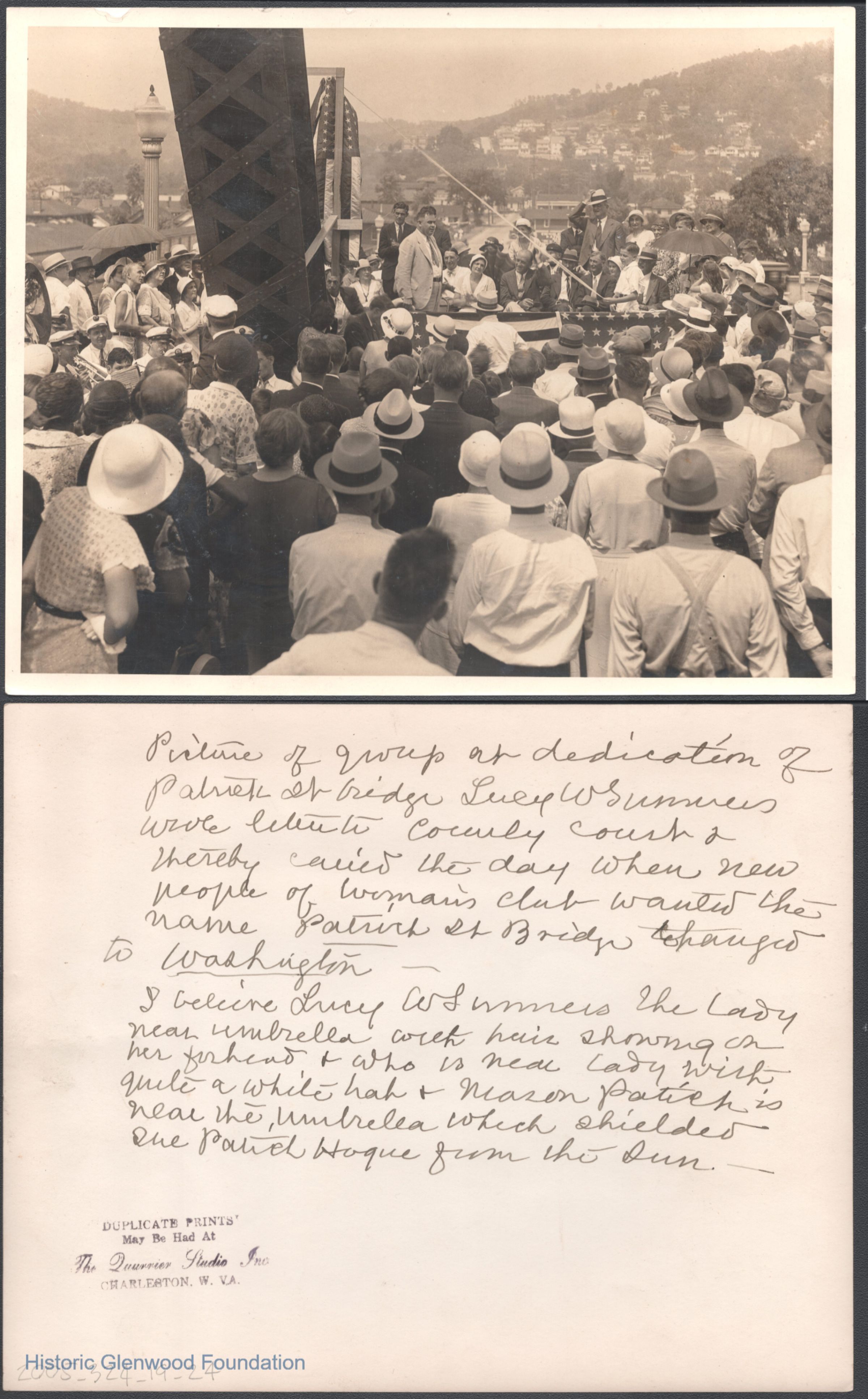 Publicity photo including Lucy W. Summers at Patrick Street Bridge dedication ceremony, no date.Creator