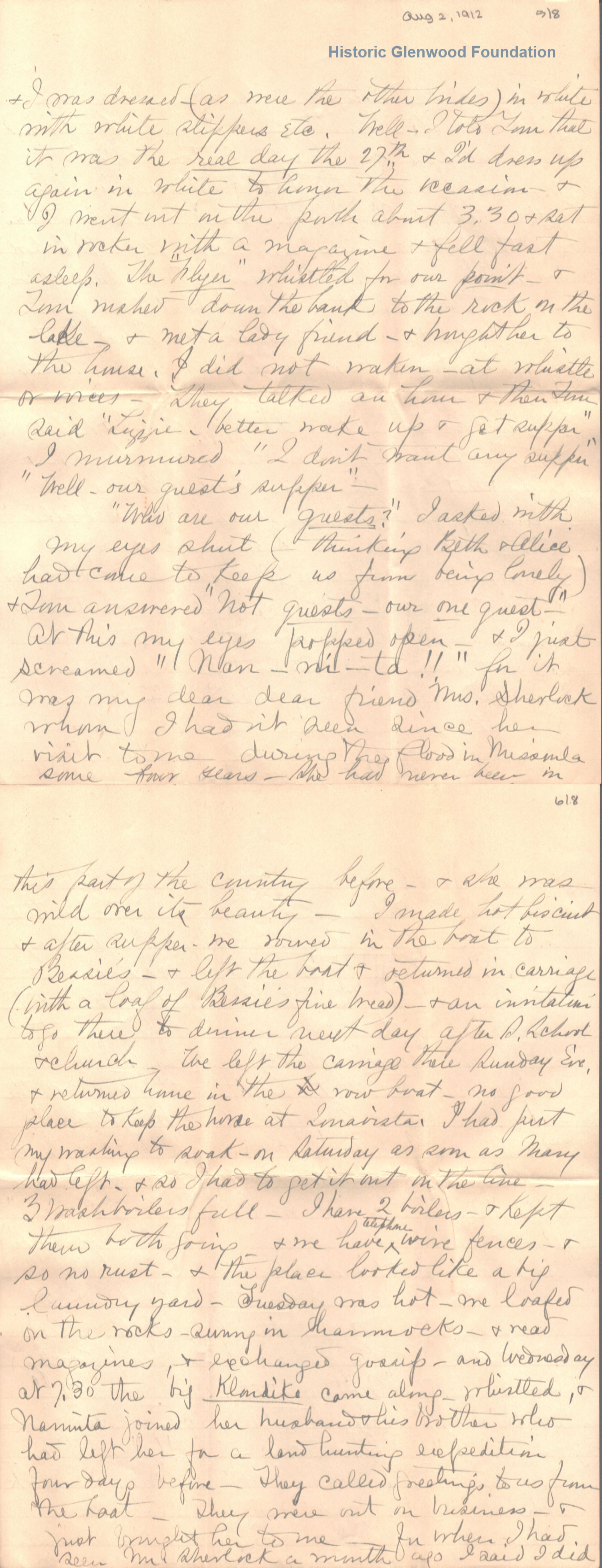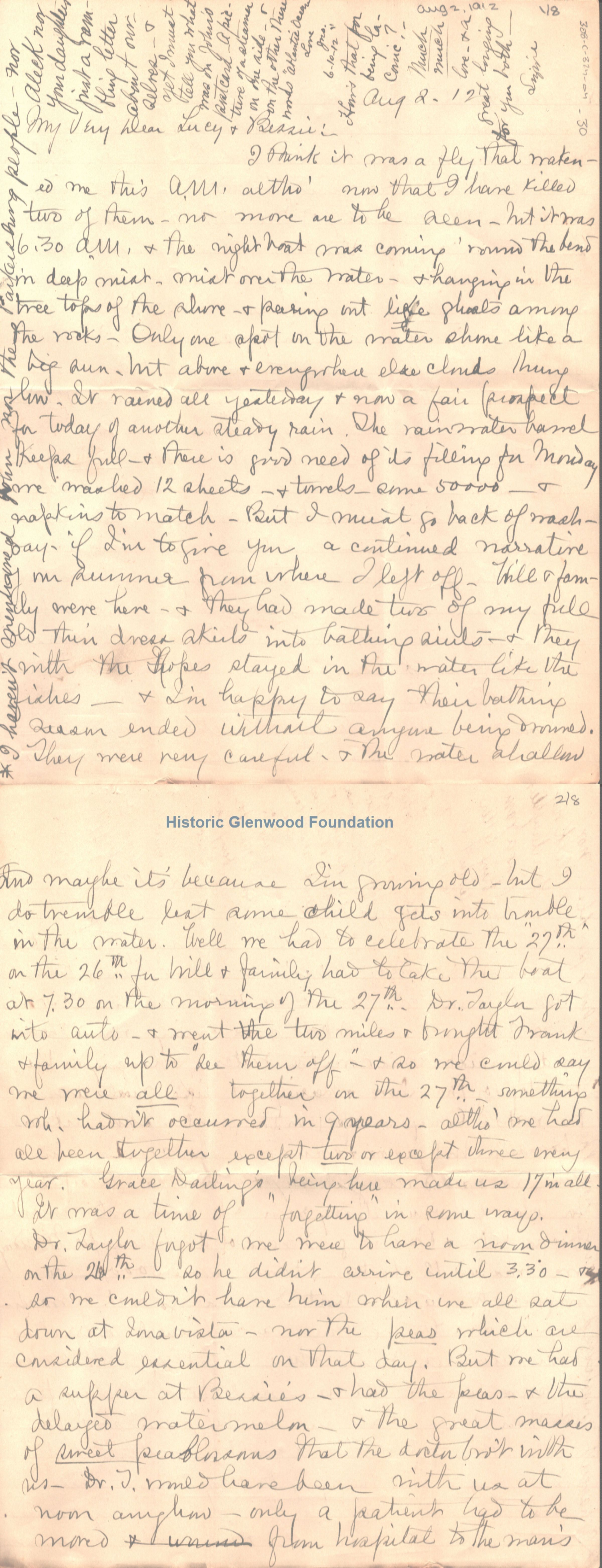 Lucy W. Summers & Elizabeth Bessie S. Quarrier from Elizabeth Lizzie W. Wickes; August 2, 1912