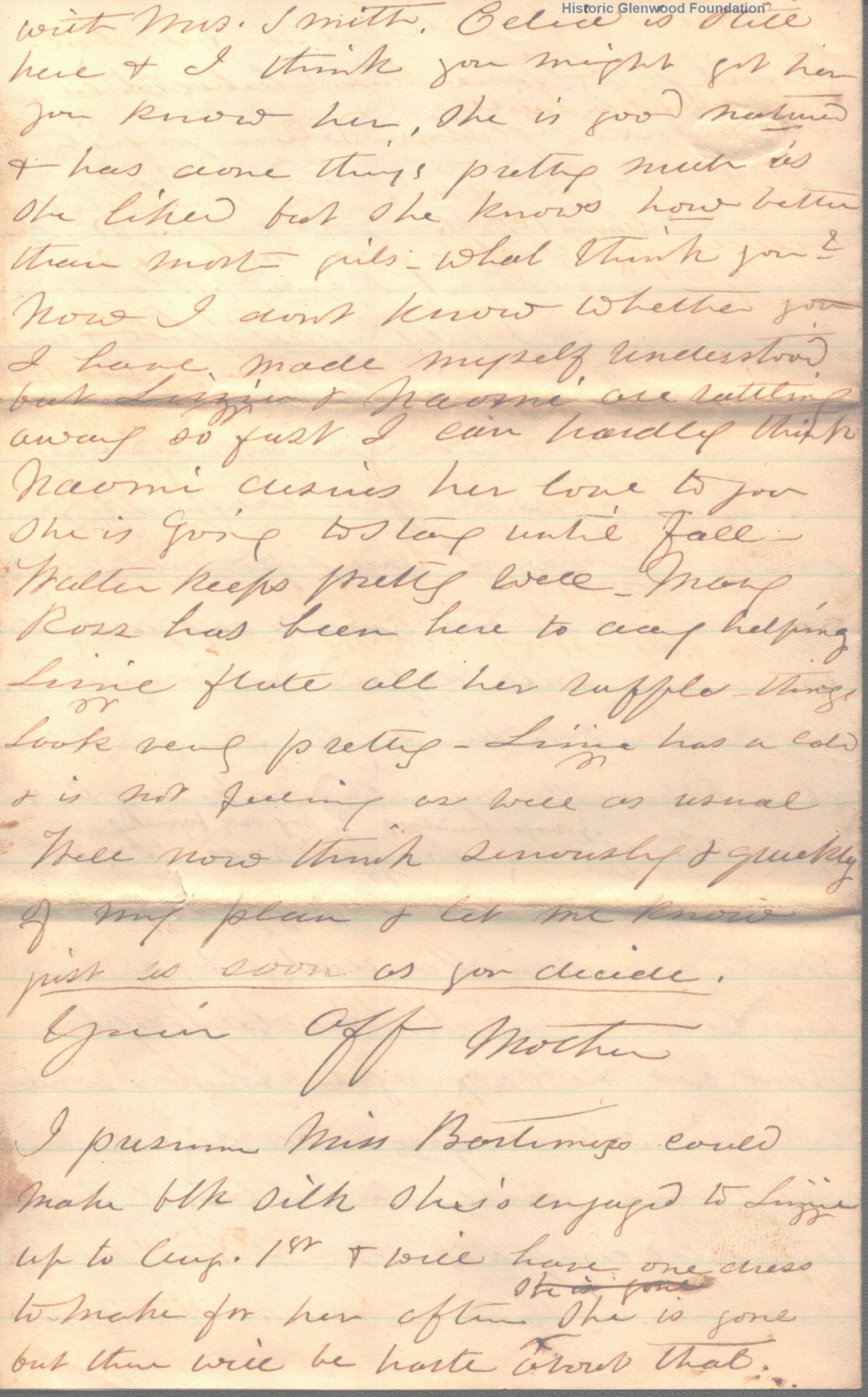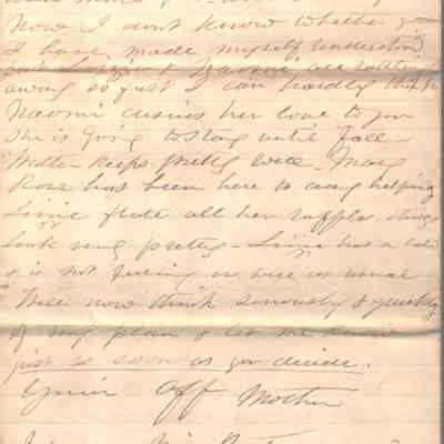 4-page letter to Lucy W. Summers from her mother, Abigail D. Woodbridge