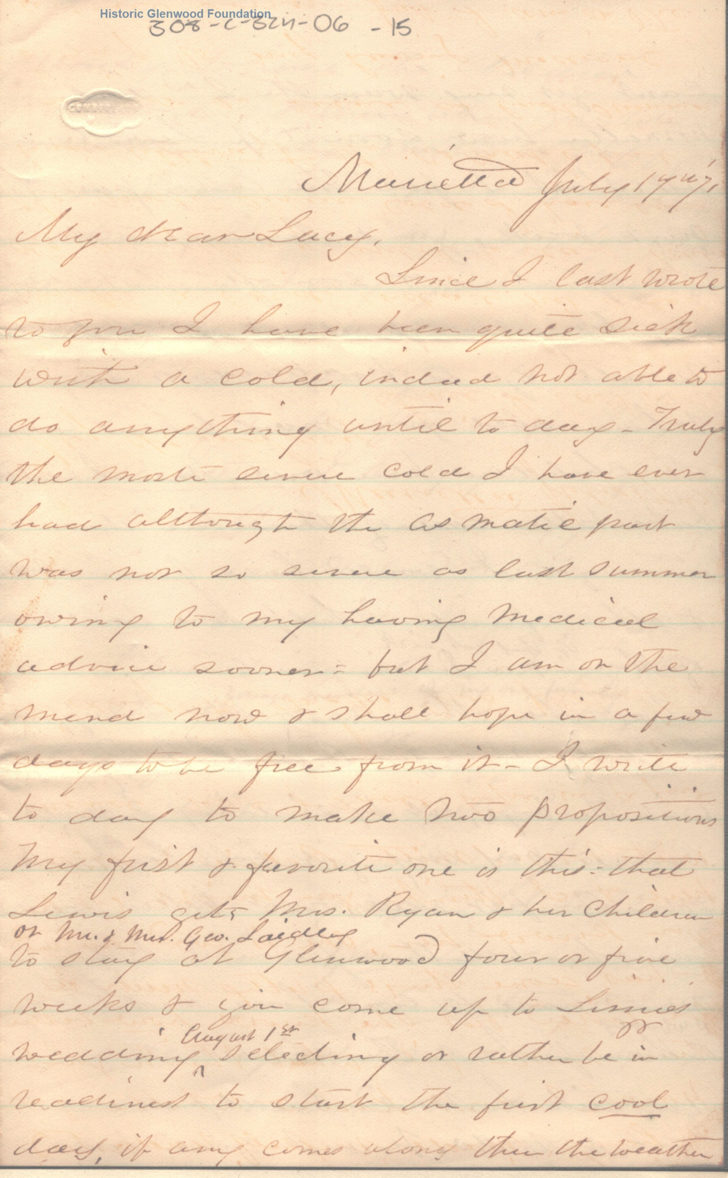 Lucy W. Summers from Abigail D. Woodbridge, July 17, 1871