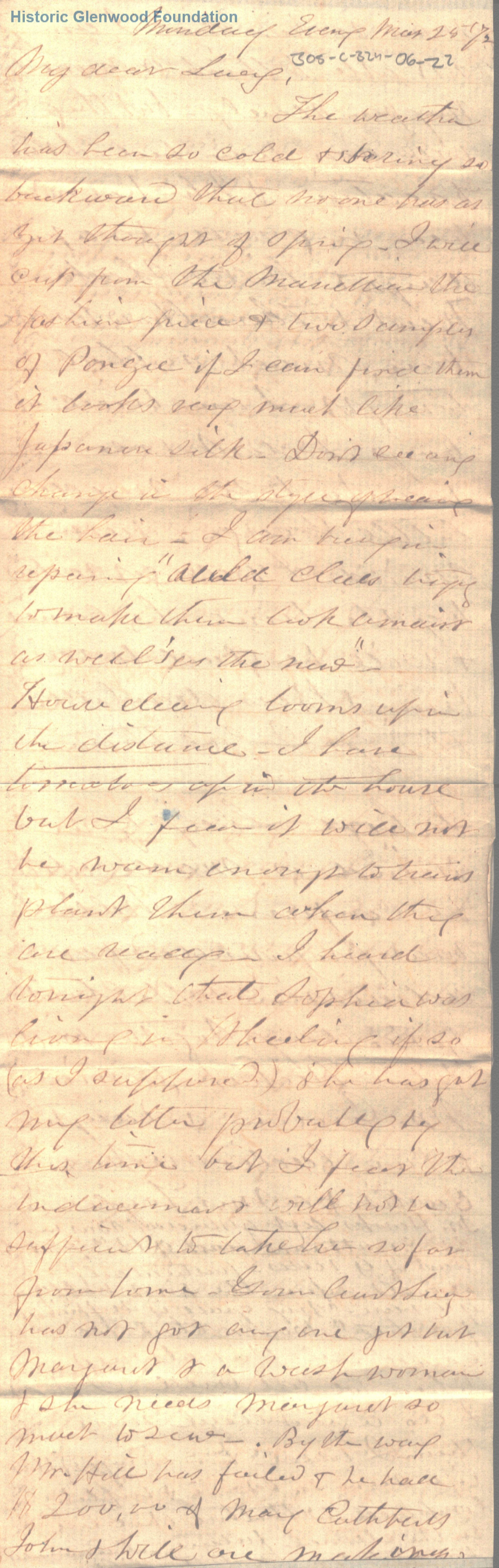Lucy W. Summers from Abigail D. Woodbridge; March 25, 1872?