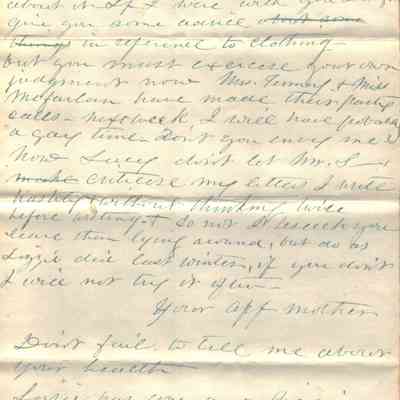6-page letter to Lucy W. Summers from her mother, Abigail D. Woodbridge