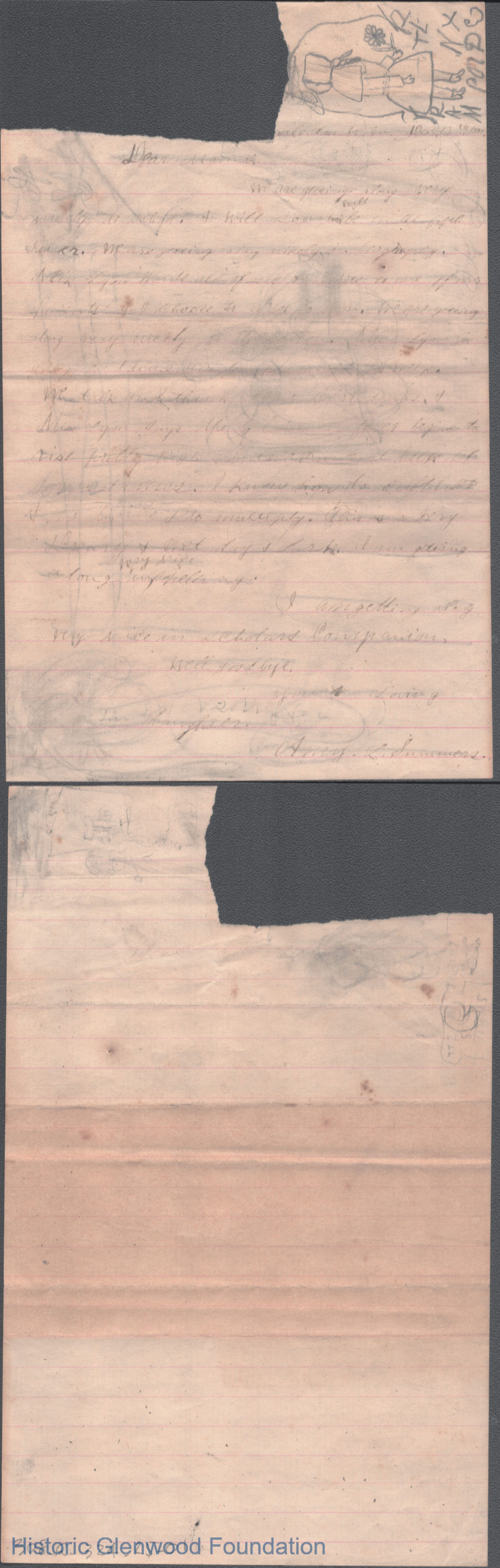 Single page letter to Lucy W. Summers from her young daughter Amacetta Summers, illegible date.