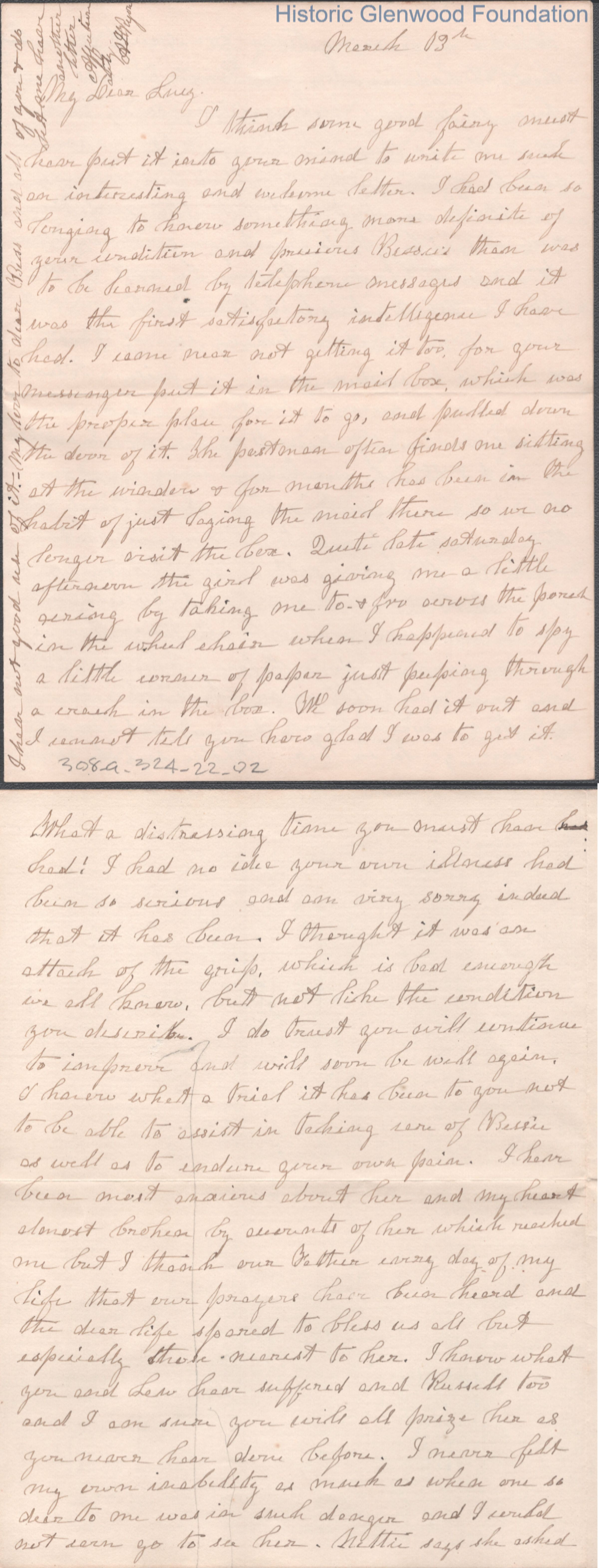 Four-page letter to Lucy W. Summers from Anna I. S. Ryon, unknown year ("March 13th" is noted).