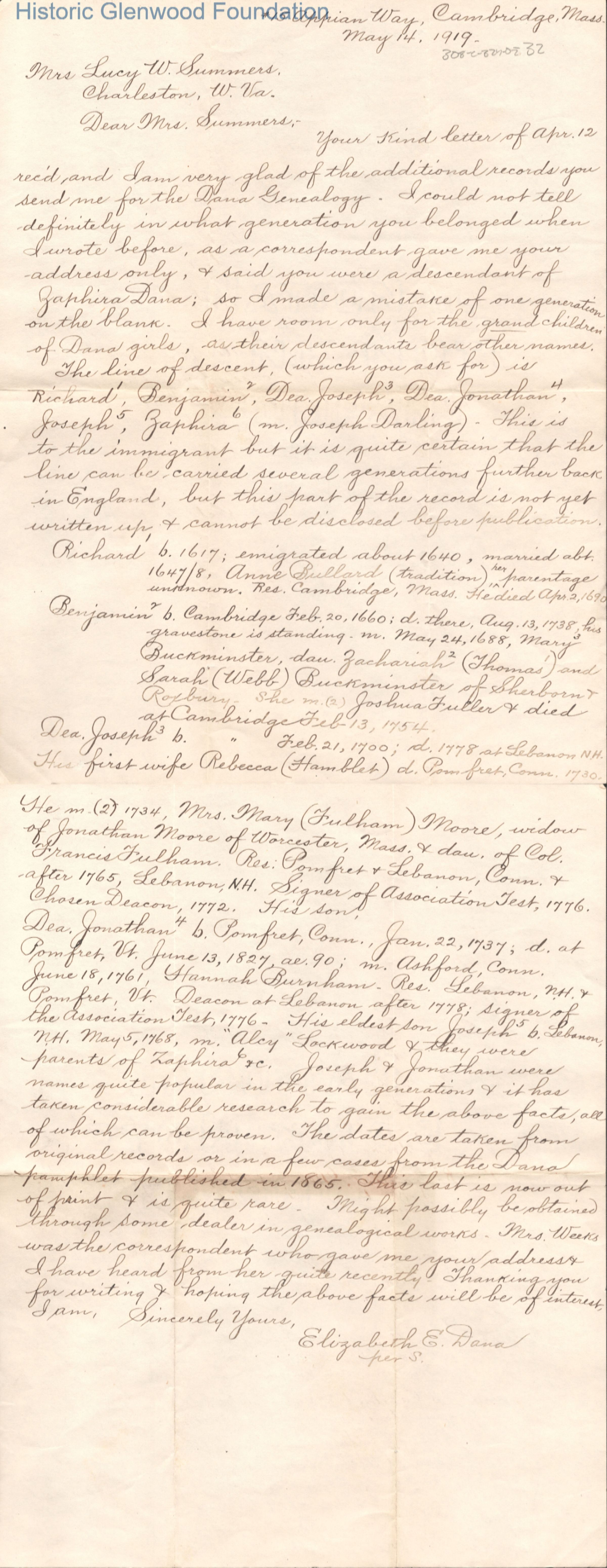 Lucy W. Summers from Elizabeth E. Dana, May 14, 1919