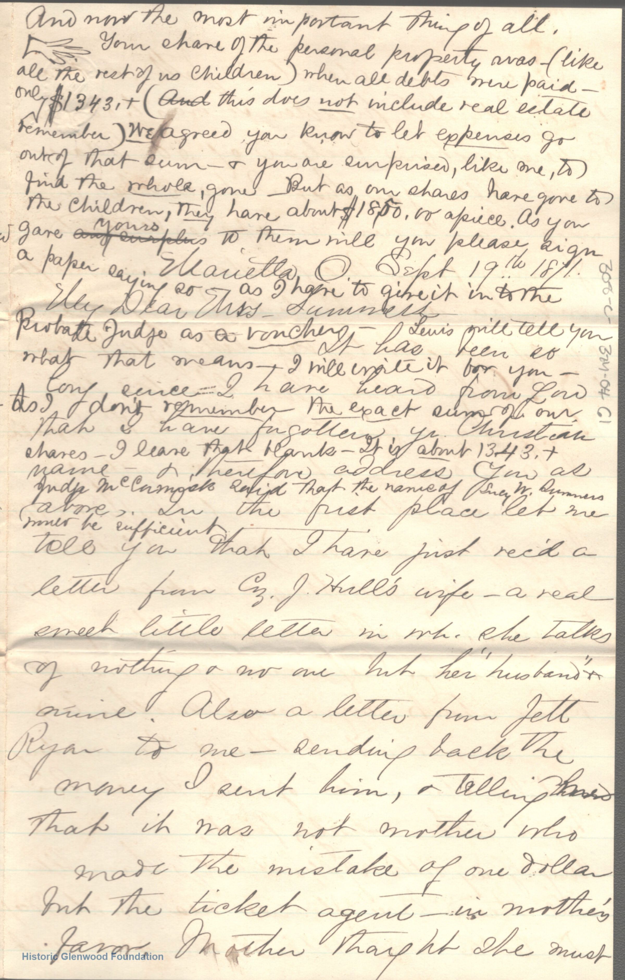 Lucy W. Summers from Elizabeth "Lizzie" W. Wickes, September 19, 1871Entry/Object ID
