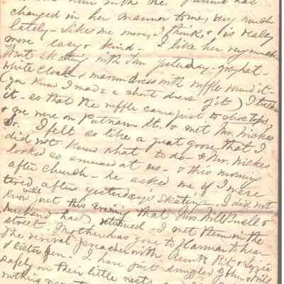 8-page letter to Lucy W. Summers from her sister, Elizabeth "Lizzie" W. Wickes. First page indicates it is page 2 so presumably at least one page of this letter is missing.