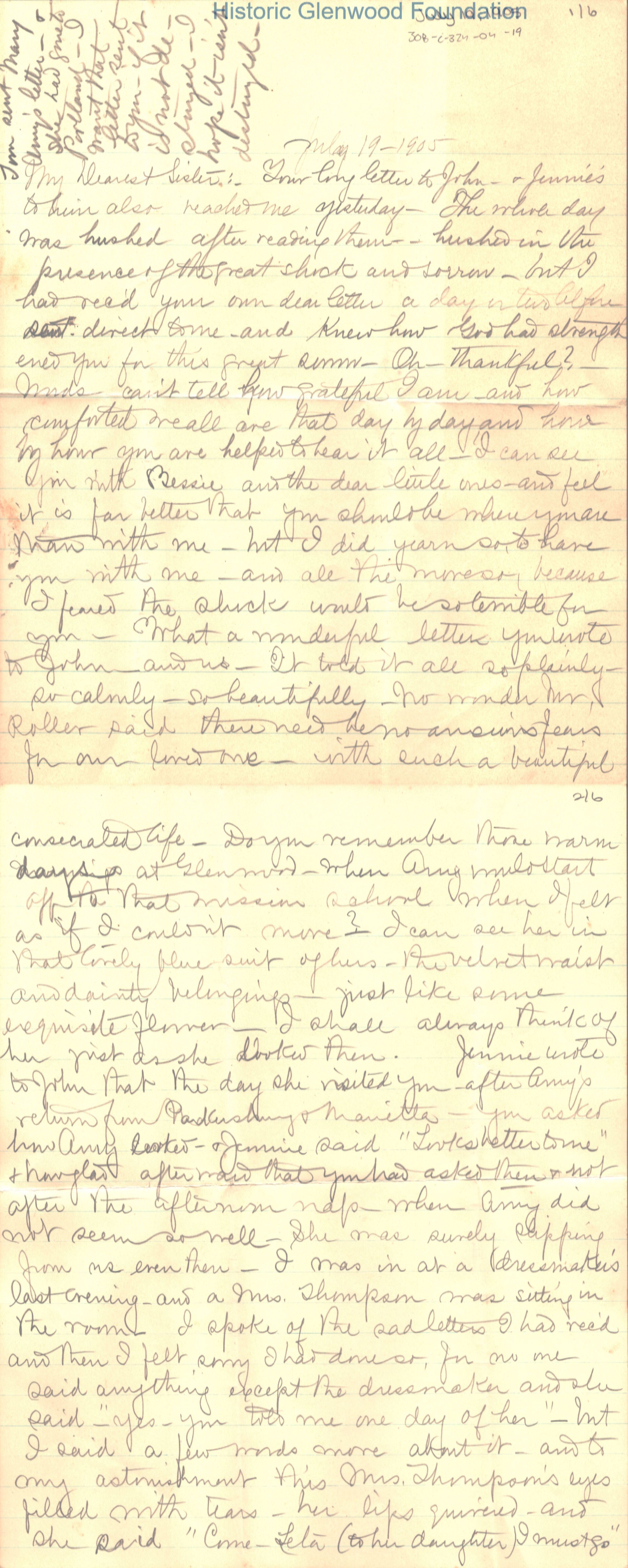 Lucy W. Summers from Elizabeth "Lizzie" W. Wickes; July 19, 1905