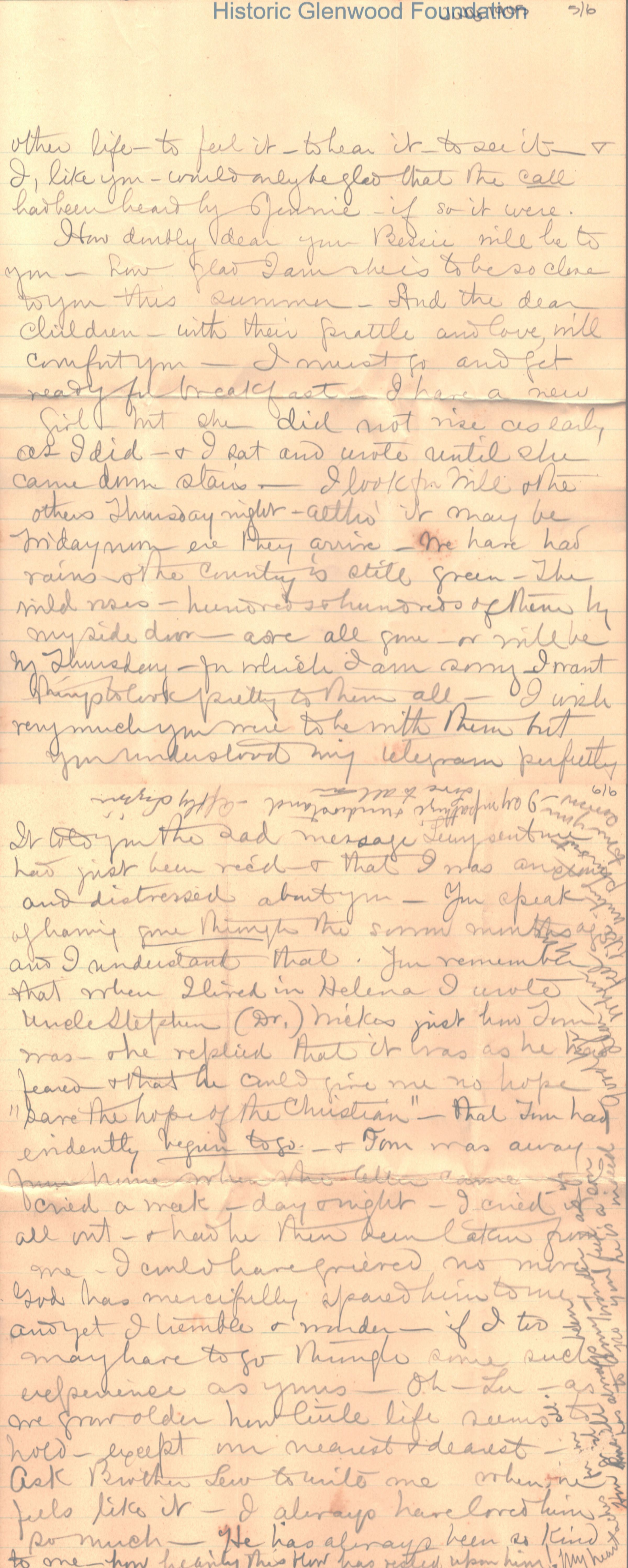 6-page letter to Lucy W. Summers from her sister, Elizabeth "Lizzie" W. Wickes