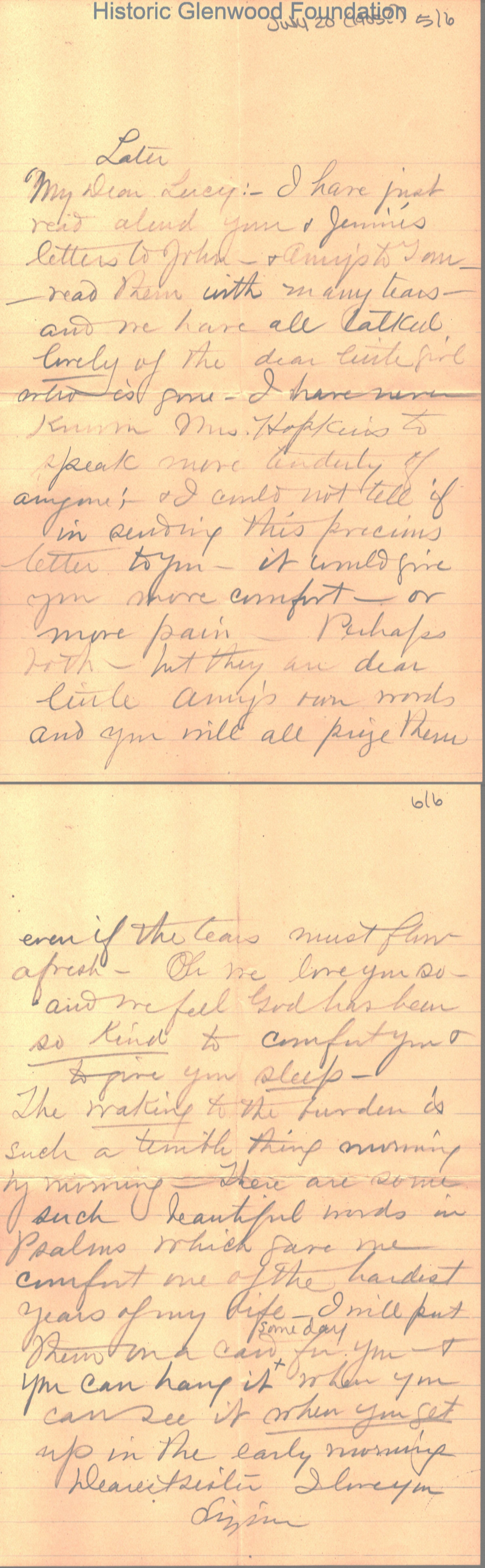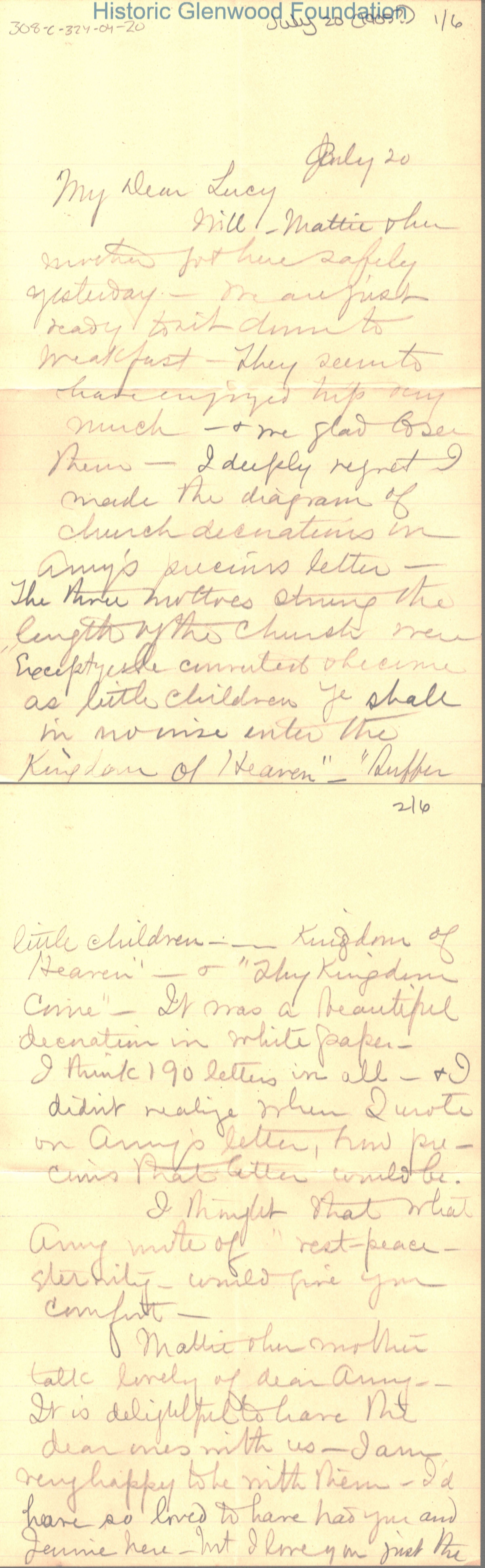 Lucy W. Summers from Elizabeth Lizzie W. Wickes; July 20, 1905