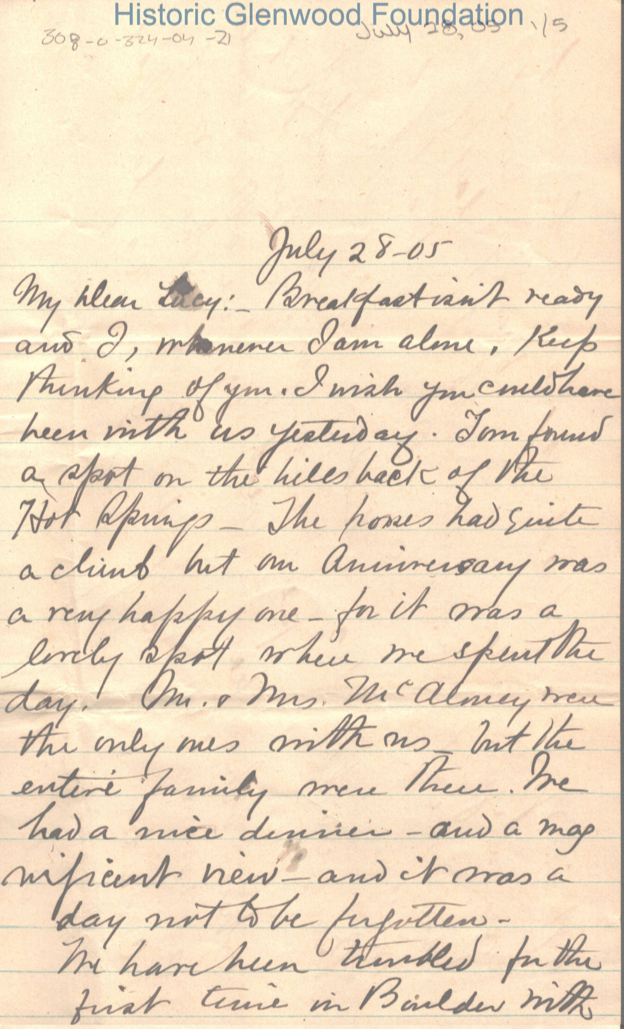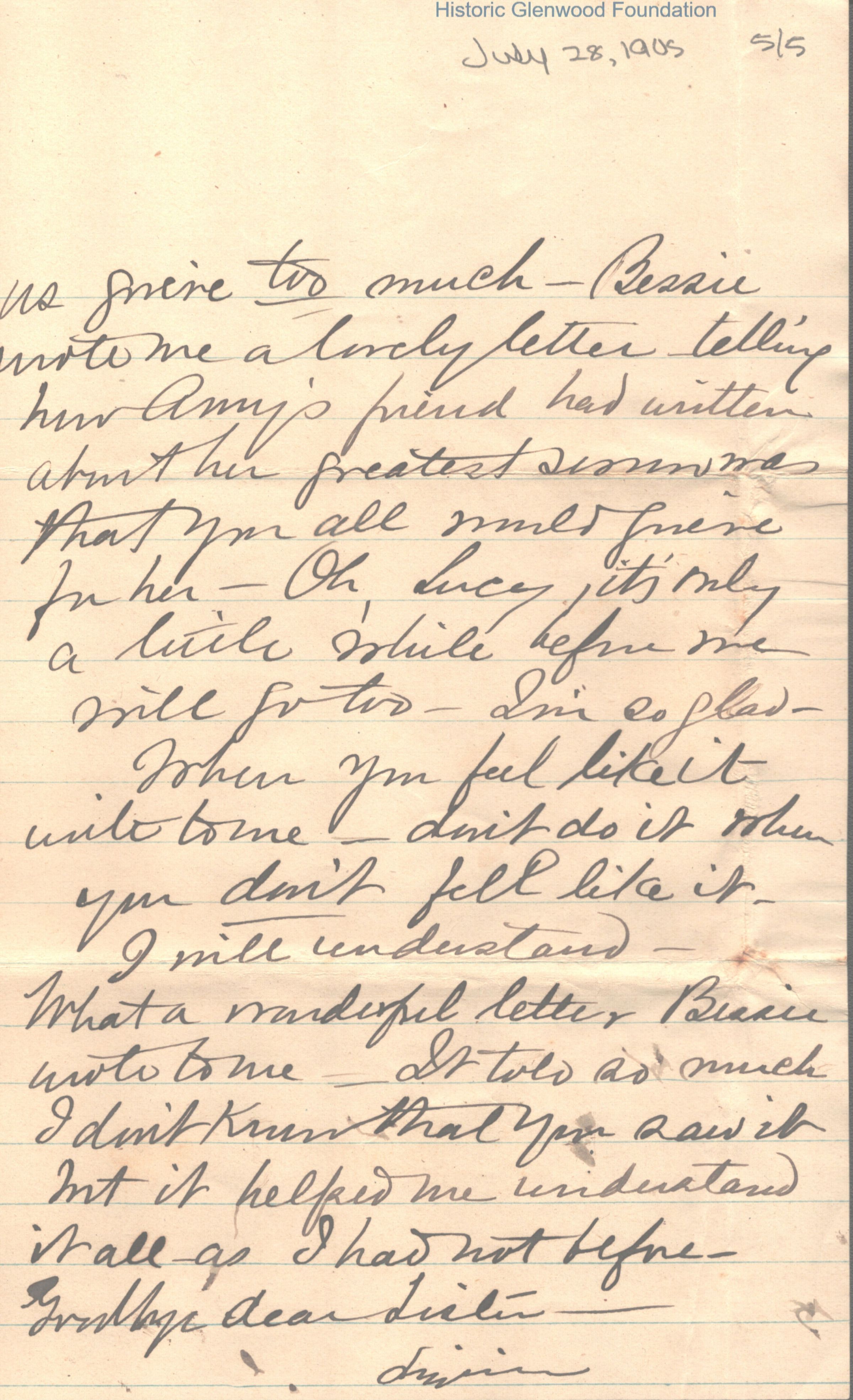Lucy W. Summers from Elizabeth Lizzie W. Wickes; July 28, 1905