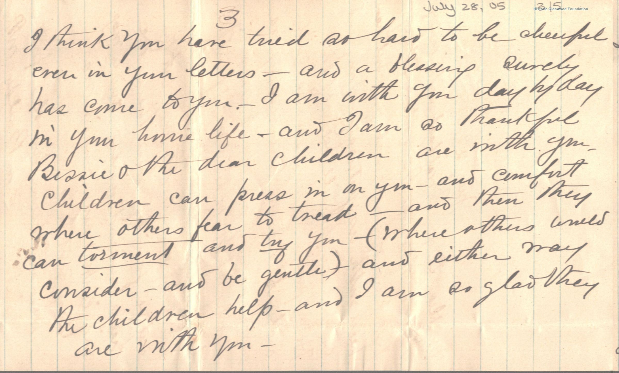 Lucy W. Summers from Elizabeth "Lizzie" W. Wickes; July 28, 1905