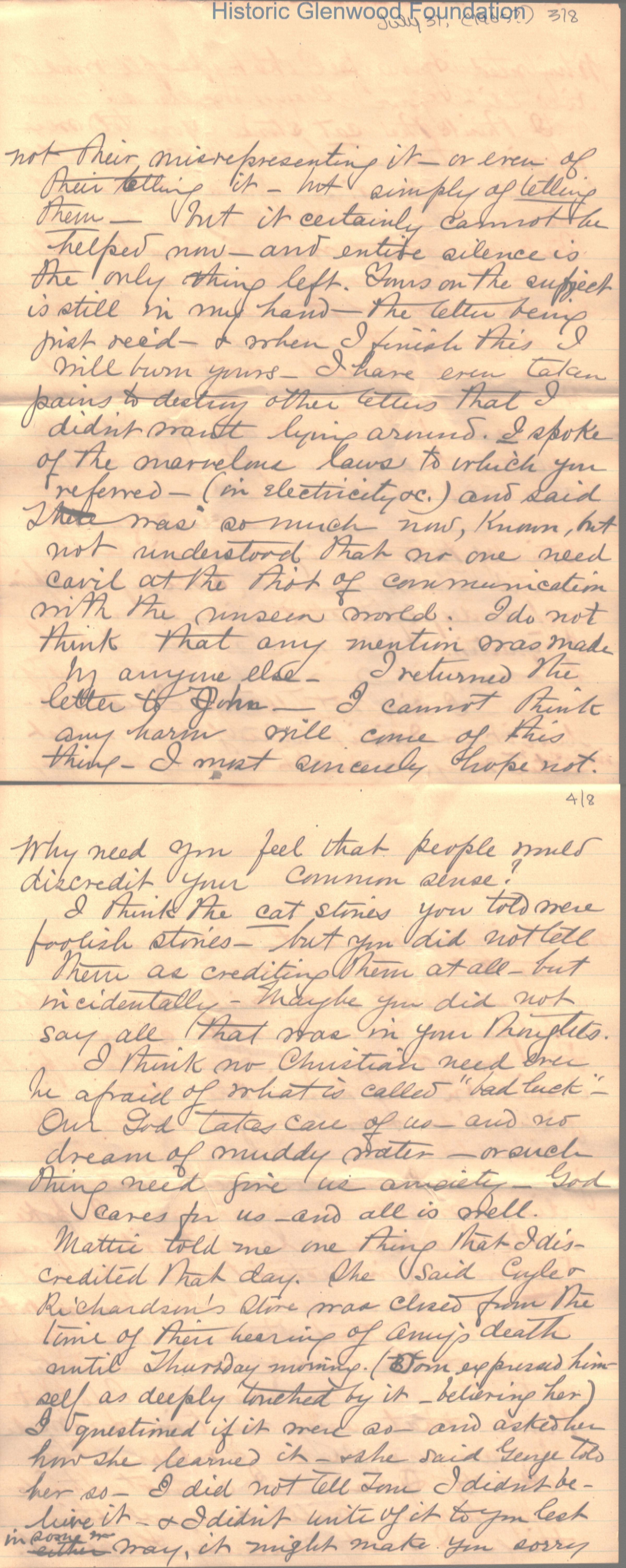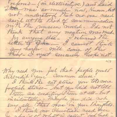 8-page letter to Lucy W. Summers from her sister, Elizabeth "Lizzie" W. Wickes